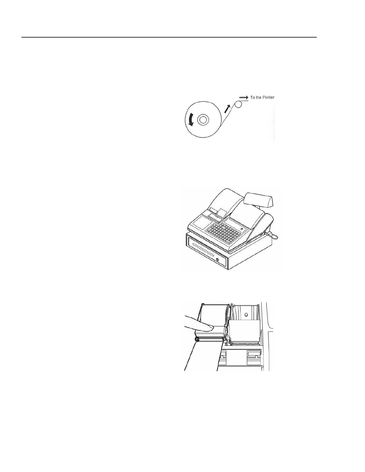Your cash register features a thermal printer which uses two rolls of 58mm standard bond paper; one roll (left side)
