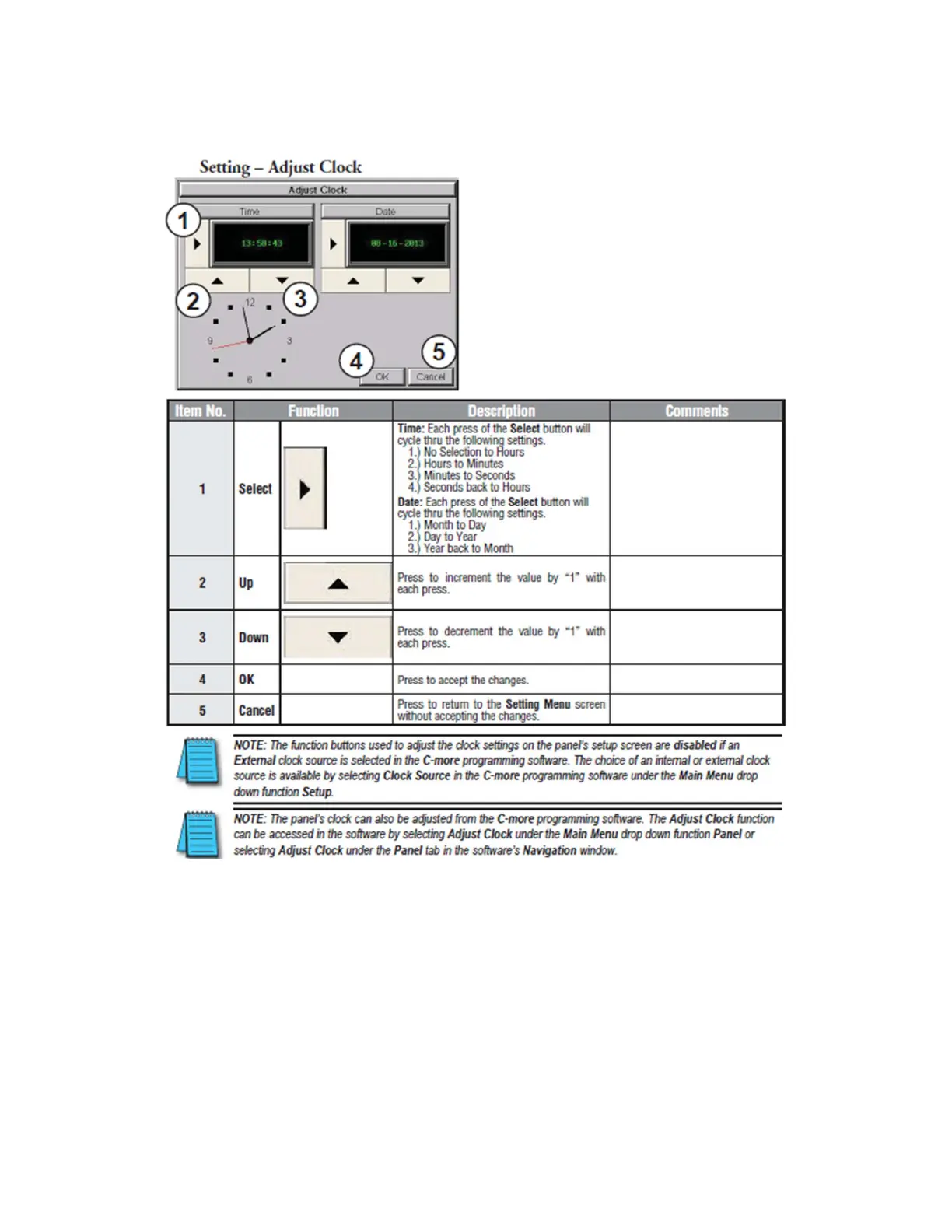 Figure 35. Adjusting the Clock