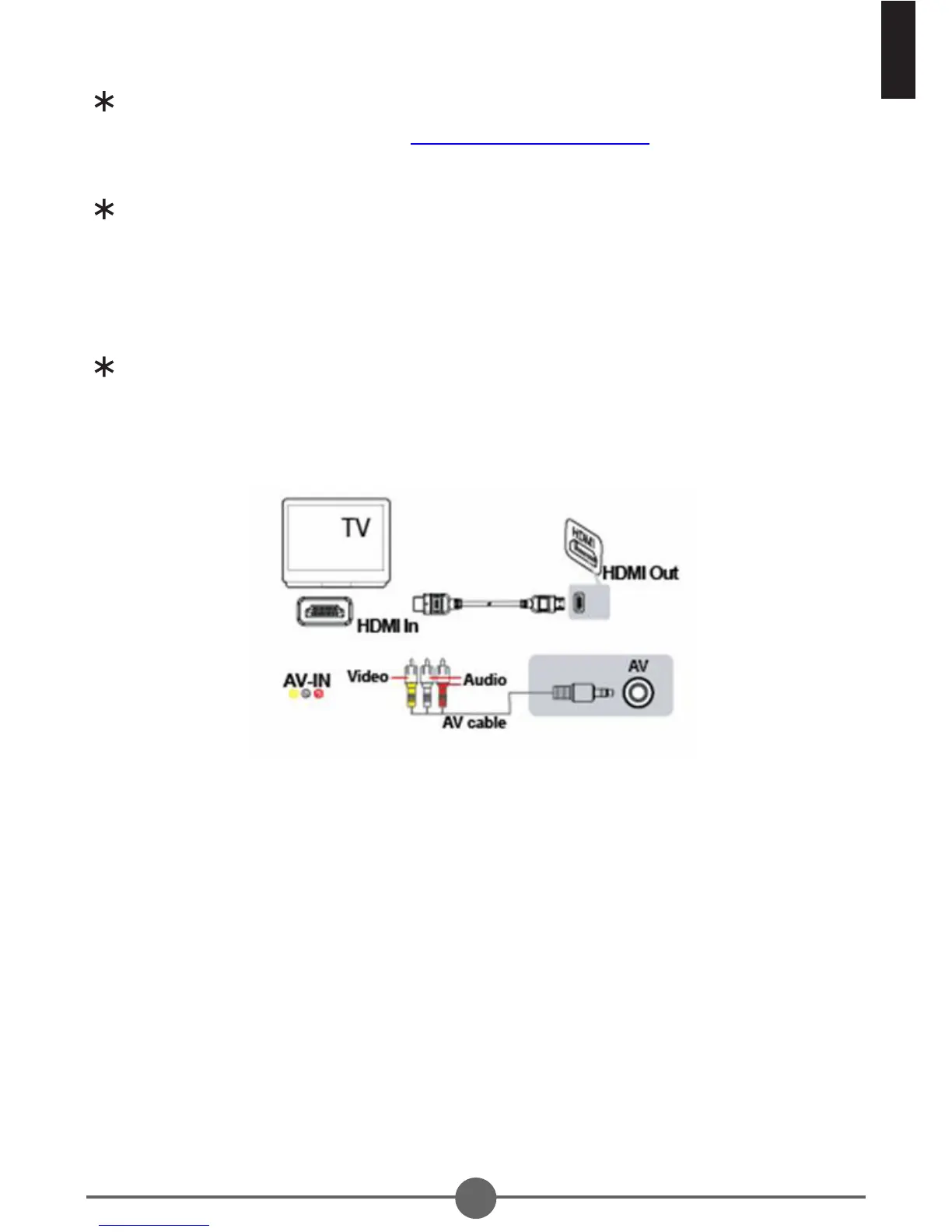 1. 本机可用 AV 视频线或 HDMI 线与电视端子相连,这样即可在电视上观赏。