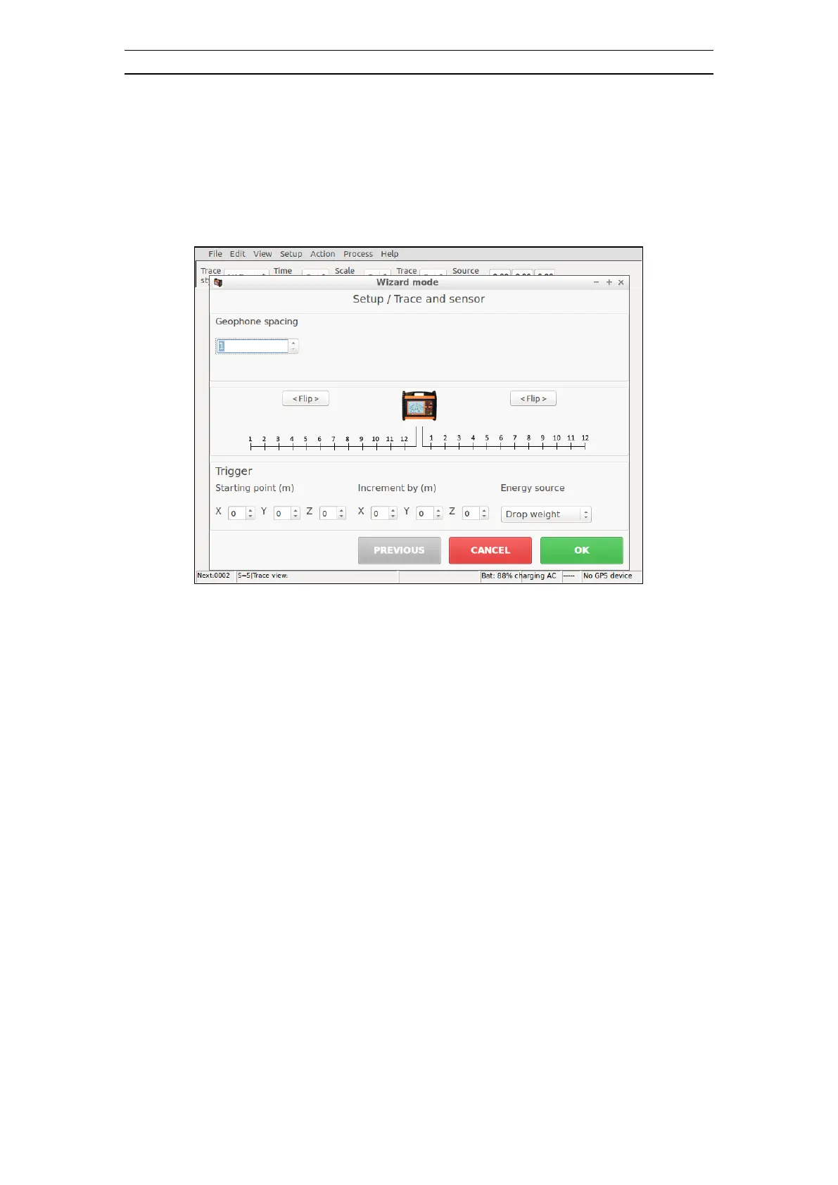 • Enter geophone spacing