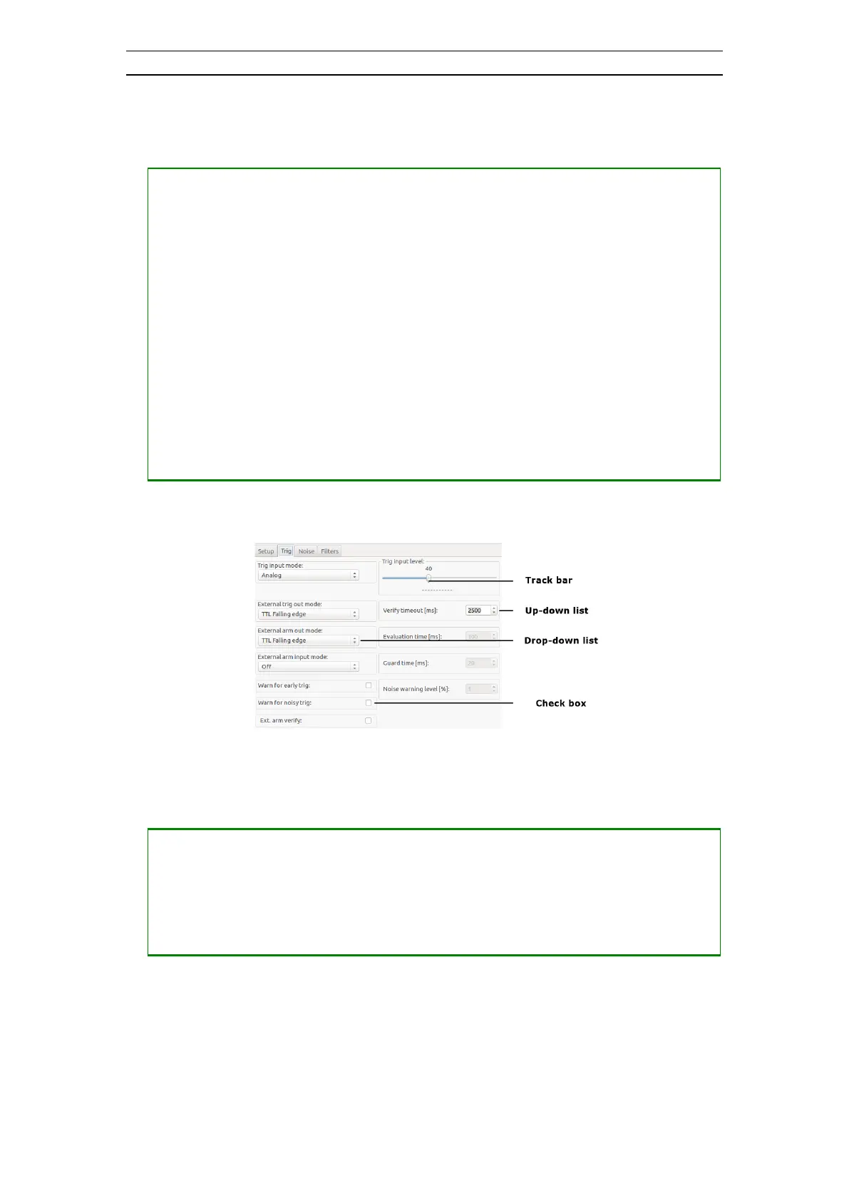 Figure 14 Part of Trig setup dialog as input field example