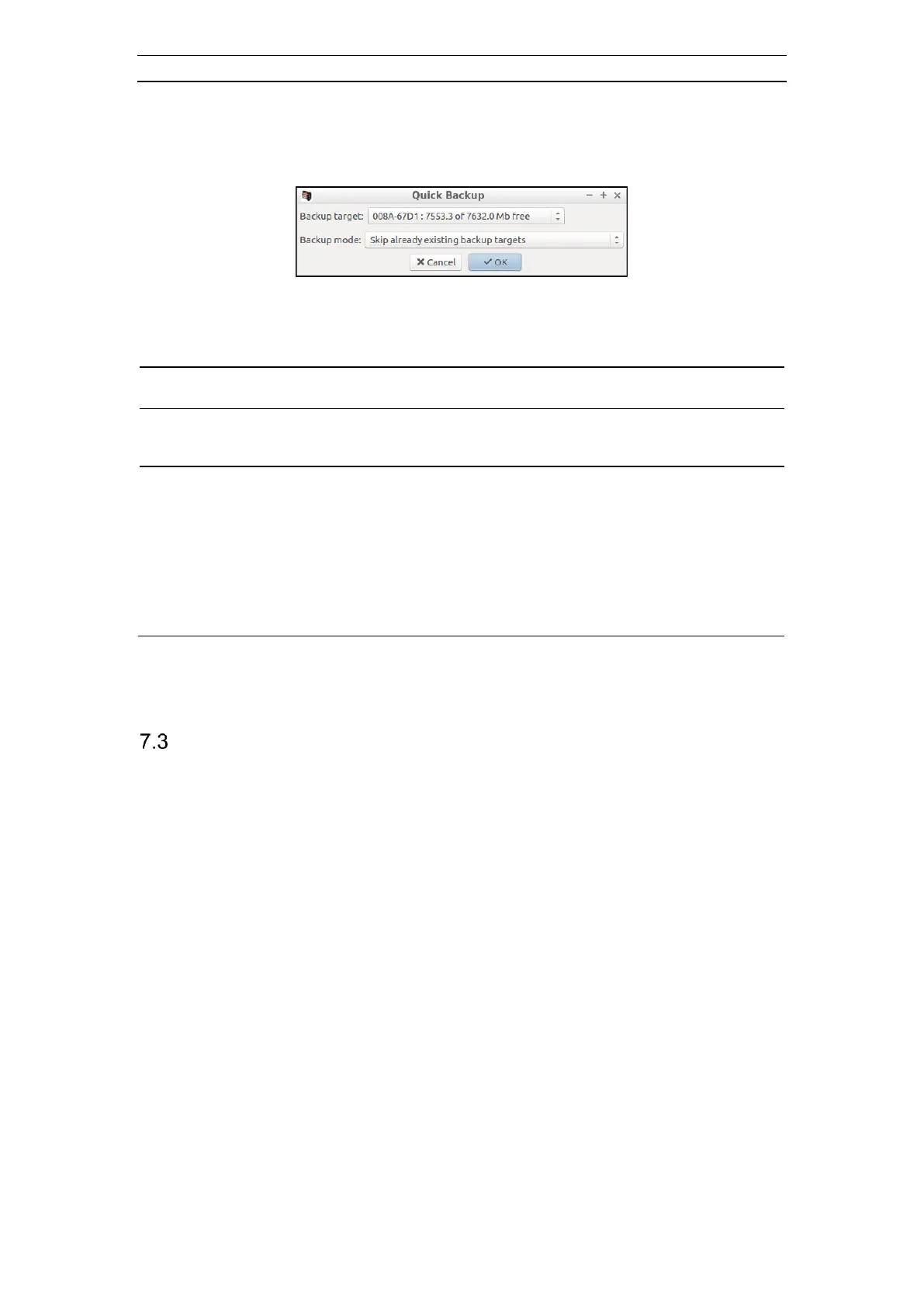 Figure 70 The Quick Backup dialog