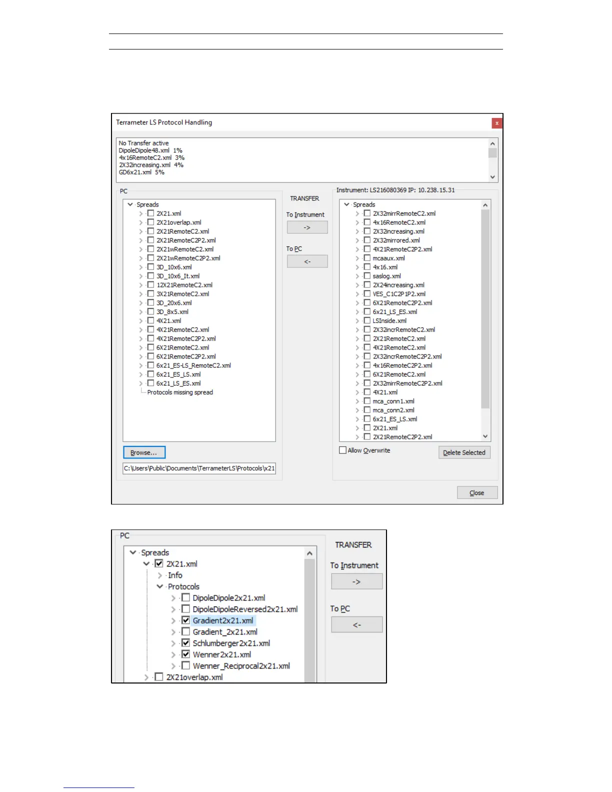 Figure 11. Spread and protocol transfer dialog