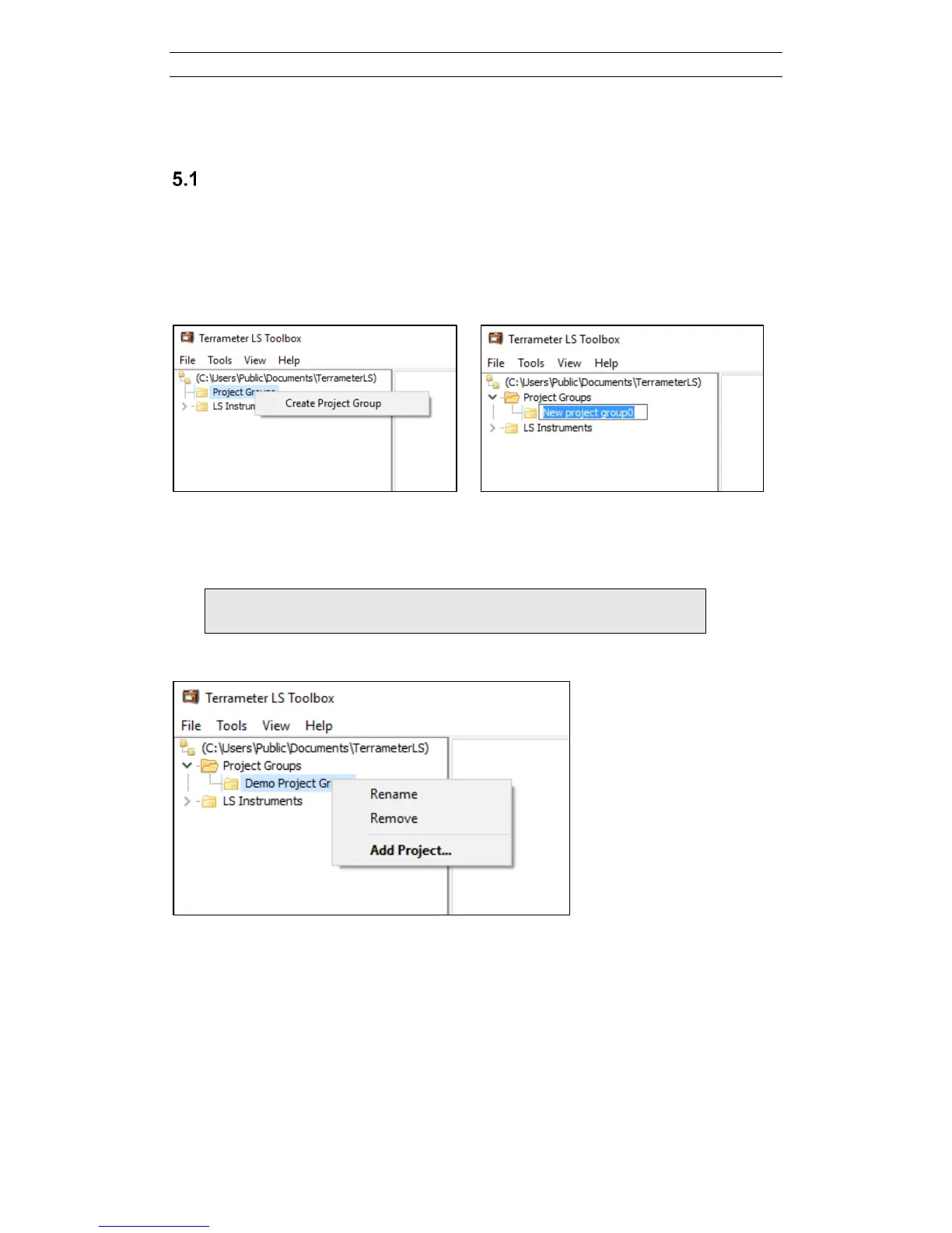 project group. A project group can contain one or several Terrameter LS projects. It is