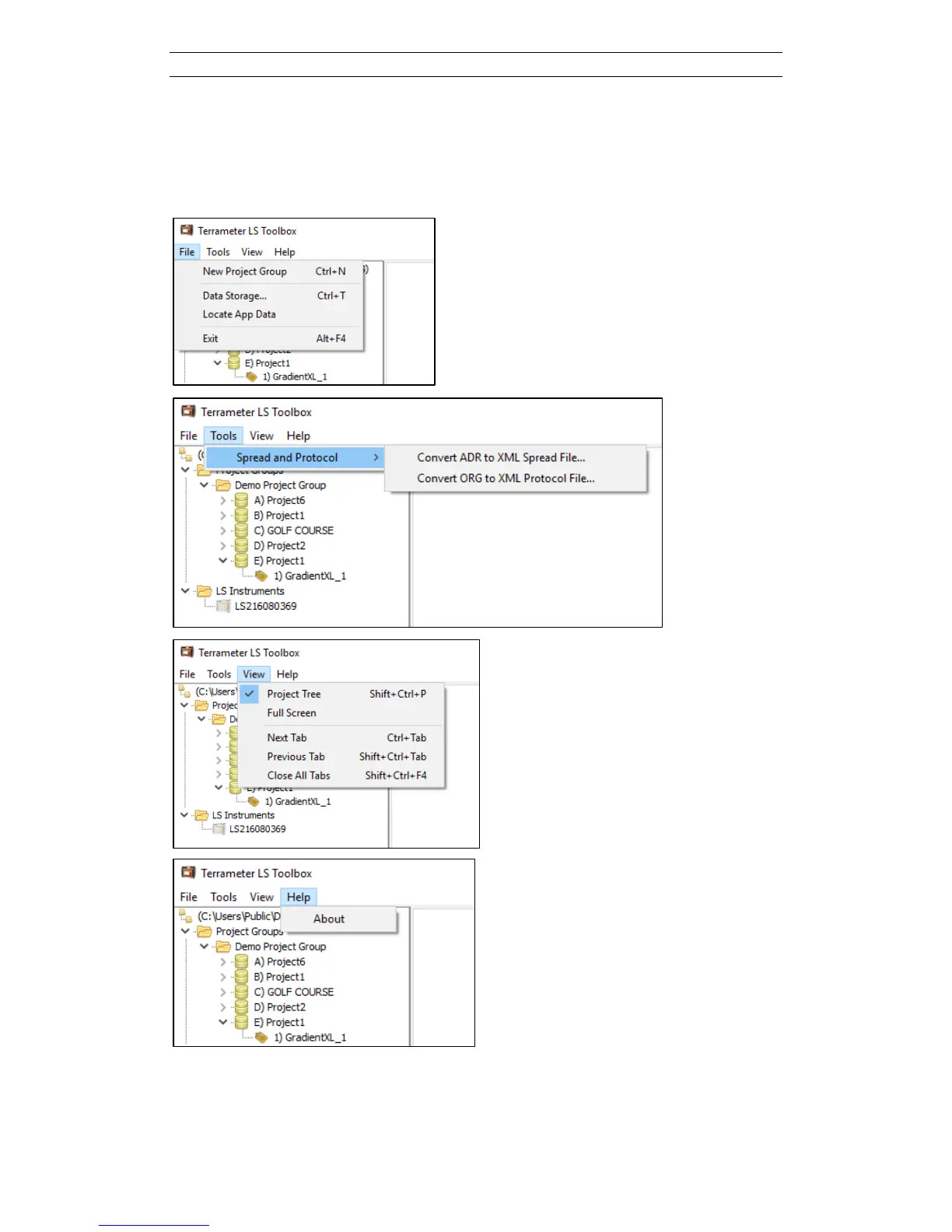 The main menu of Terrameter LS Toolbox has four top menus (Figure 51).