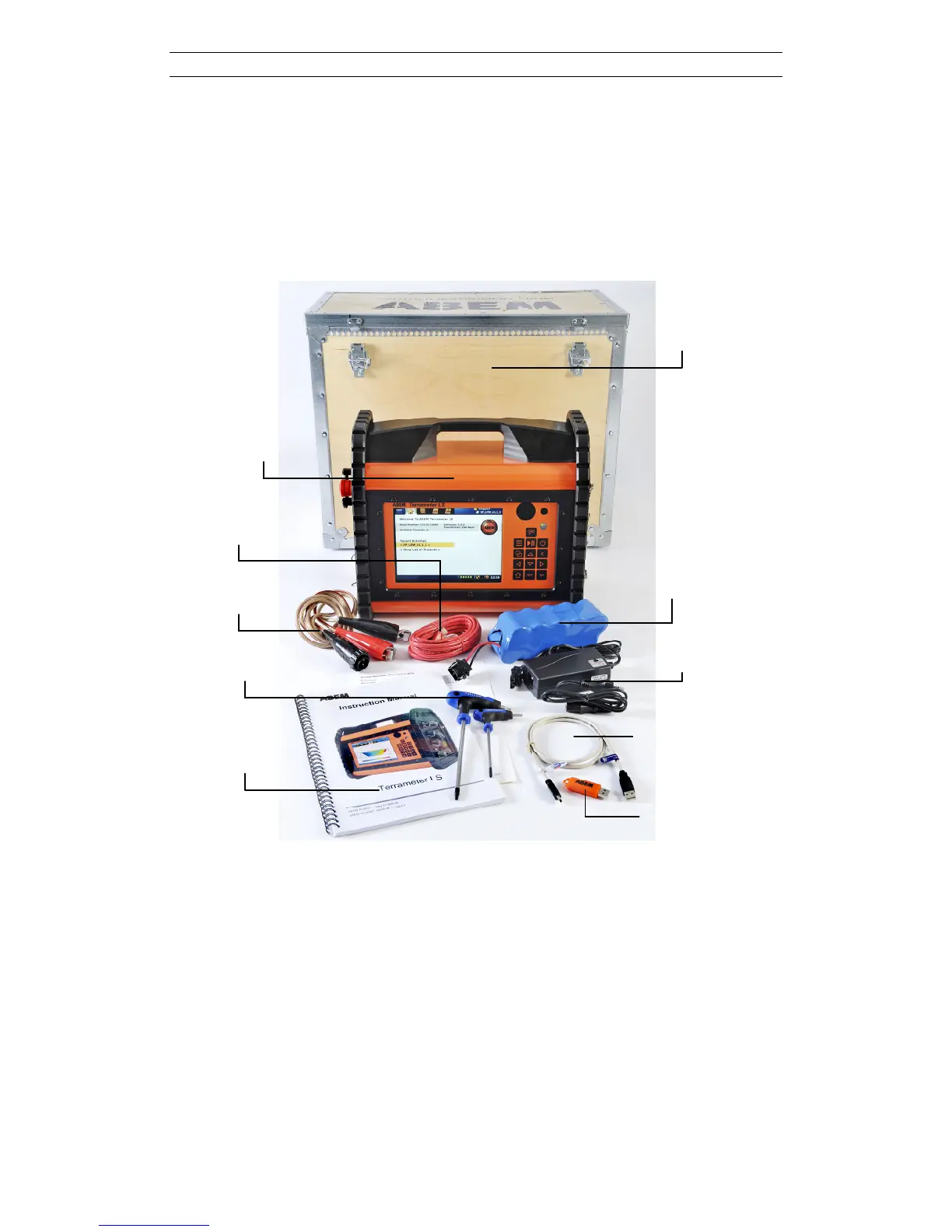 Figure 2 shows the parts that are shipped with a Terrameter LS for basic imaging.