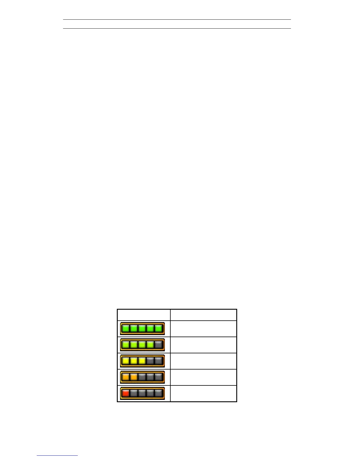 Table 1 below shows a guideline to the battery indicator. The values are not very