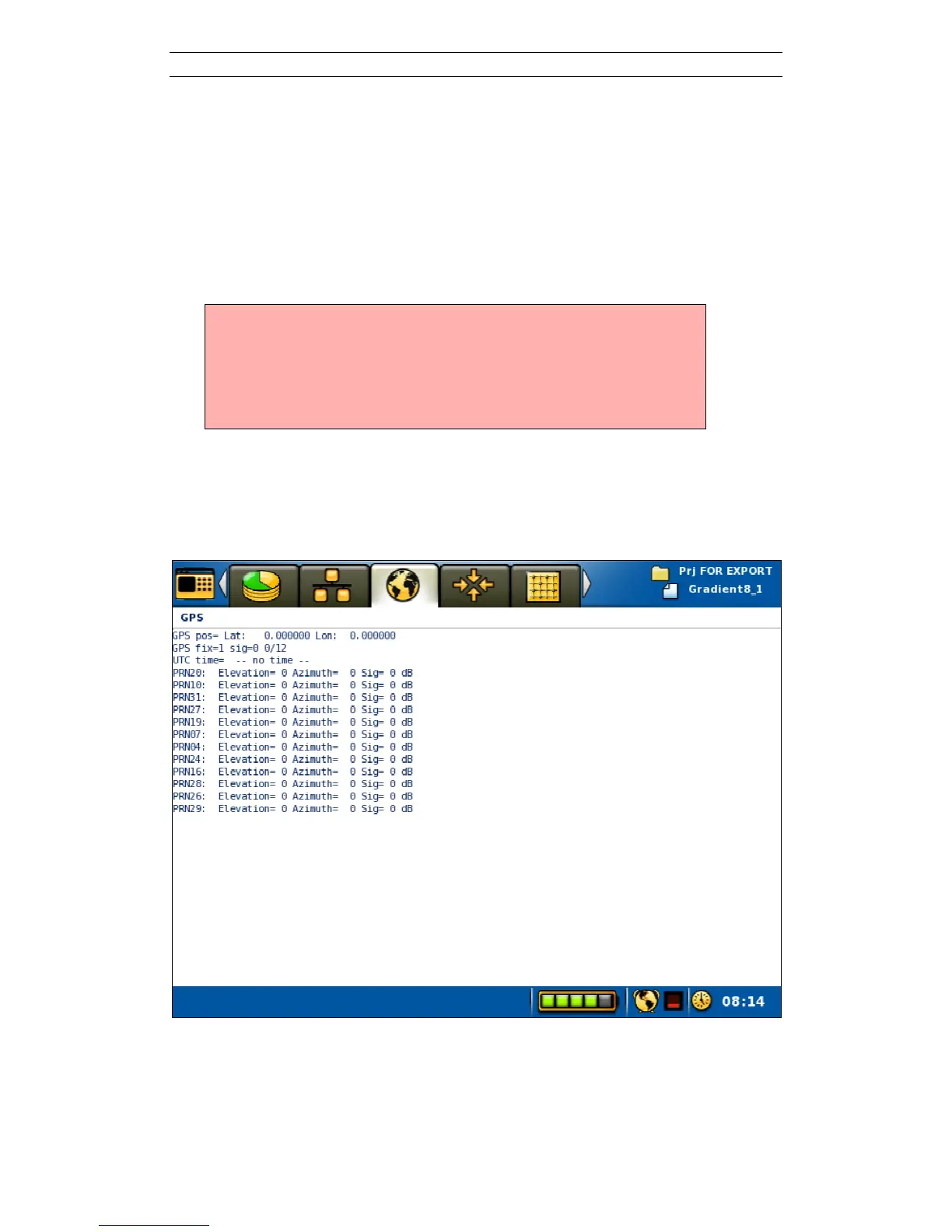 The GPS View (Figure 34) shows the receiving status for the GPS and the present