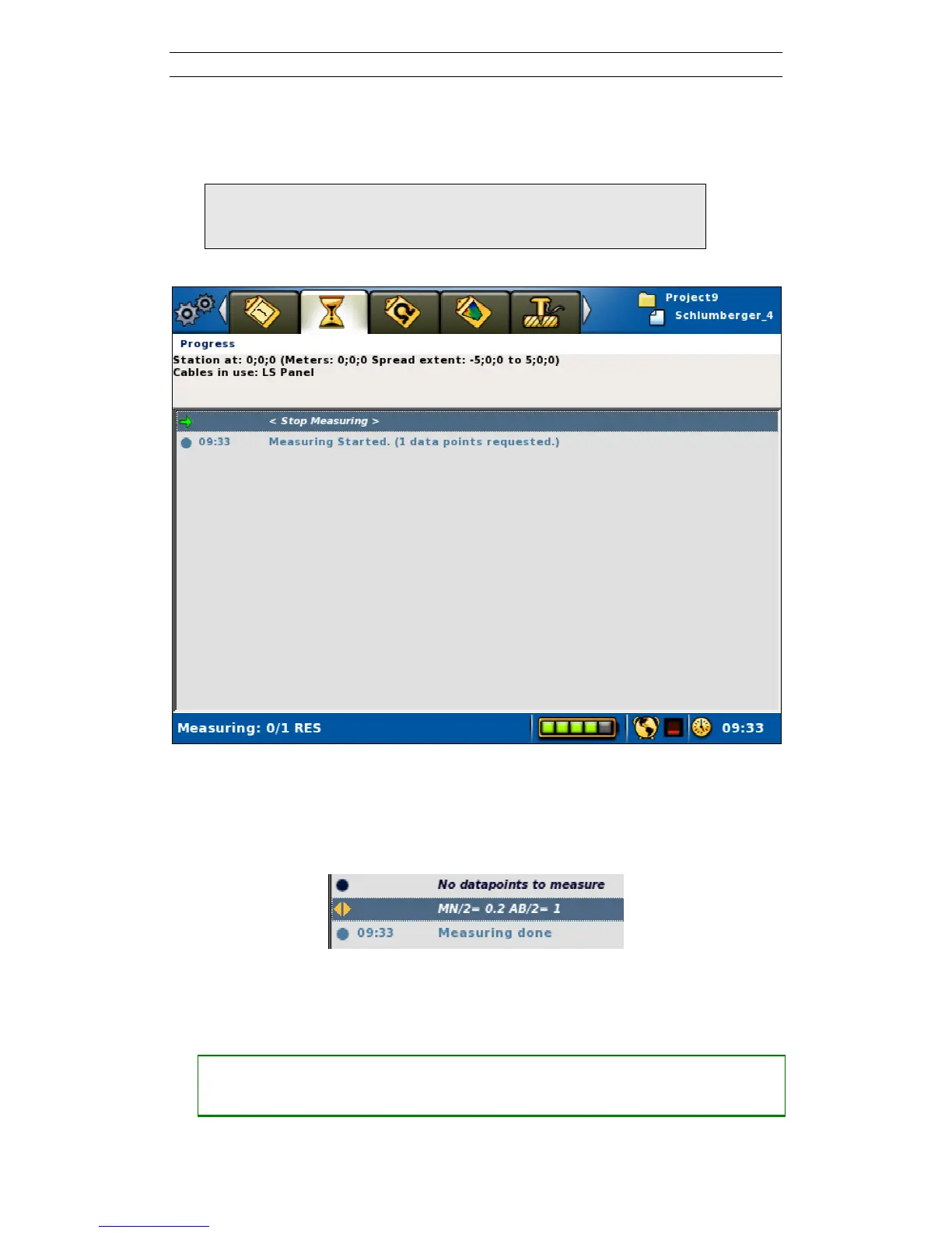 Figure 69 shows the Progress View during a VES measurement. The measurement