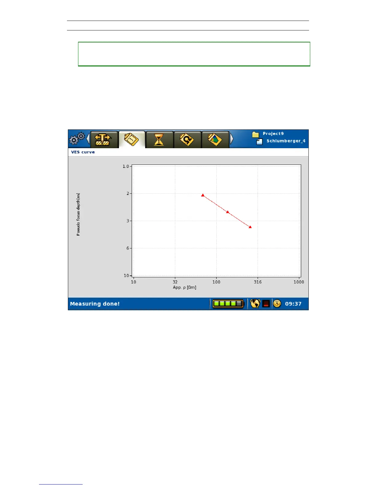 In VES mode a sounding curve will be shown in a double logarithmic diagram on the