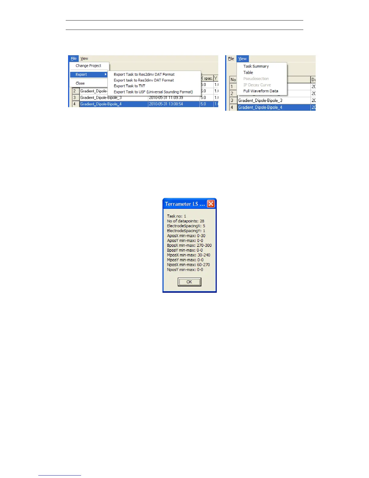- Export: The Task data can be exported to DAT, text or USF formats. For