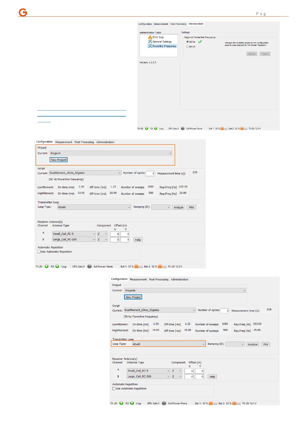 “Administration” tab (PGUp or PGDn)