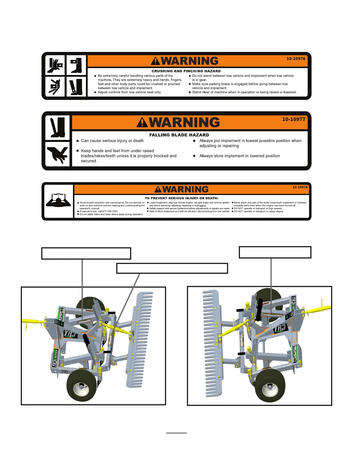 ABI Attachments TR3-E Series - Safety Labels; Crushing and Pinching Hazard; Falling Blade Hazard