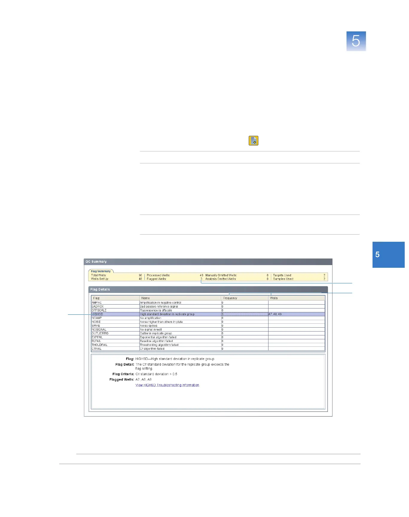 2. Review the Flags Summary. In the example experiment, three wells are flagged.