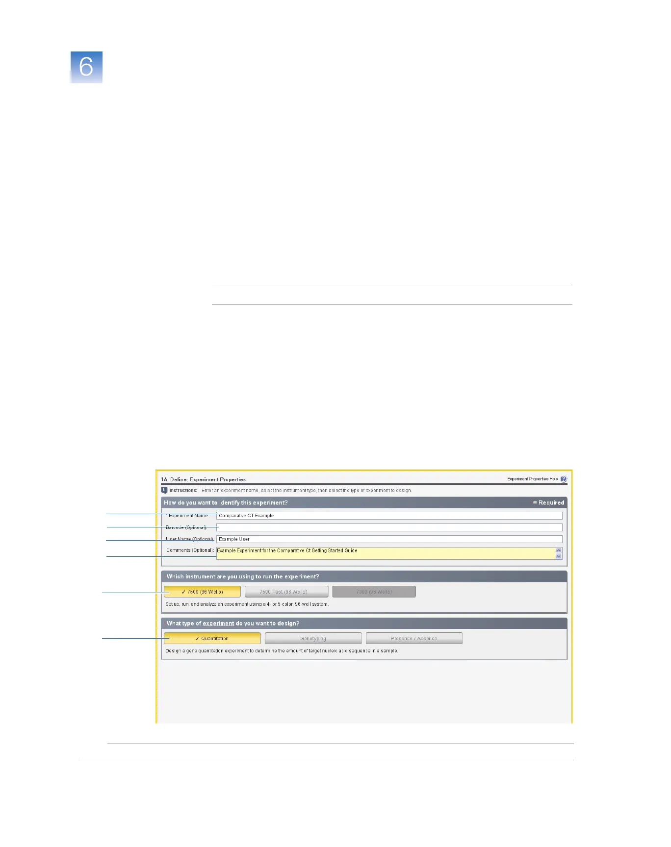 4. Click the Comments field, then enter Example Experiment for the Comparative