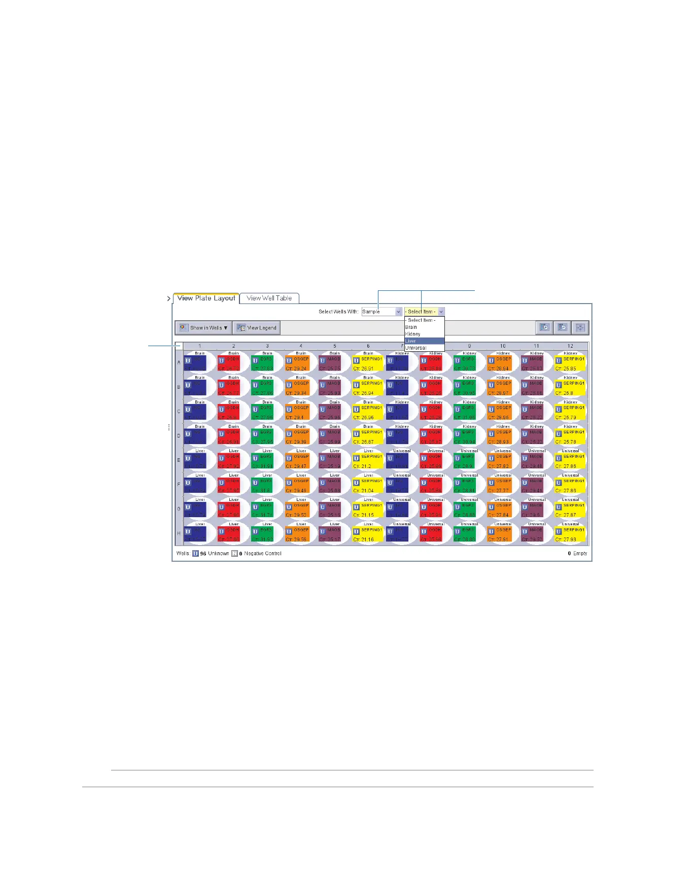 To display specific wells in the analysis screens, select the wells in the View Plate Layout