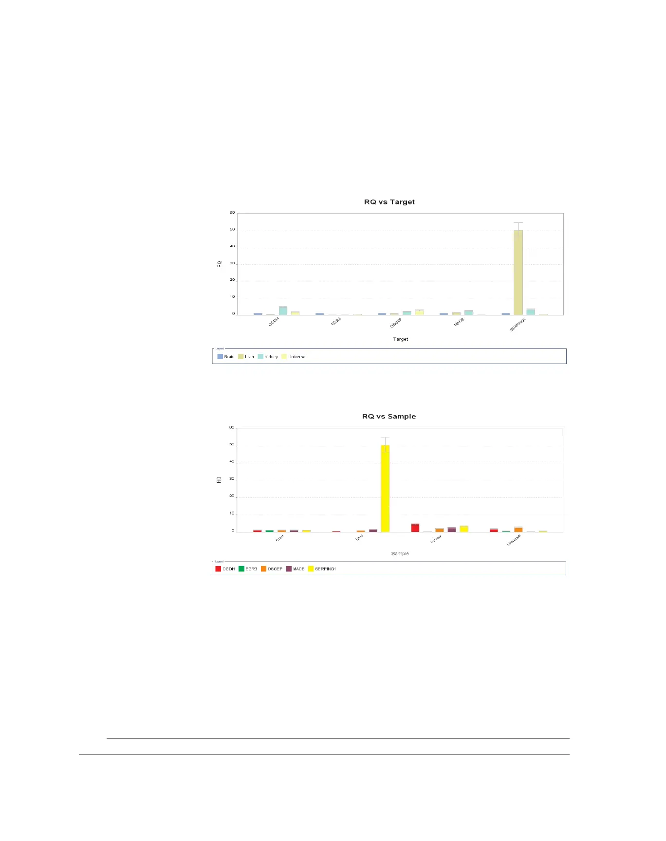 • Each target in the Gene Expression Plot screen for the expression level (or fold