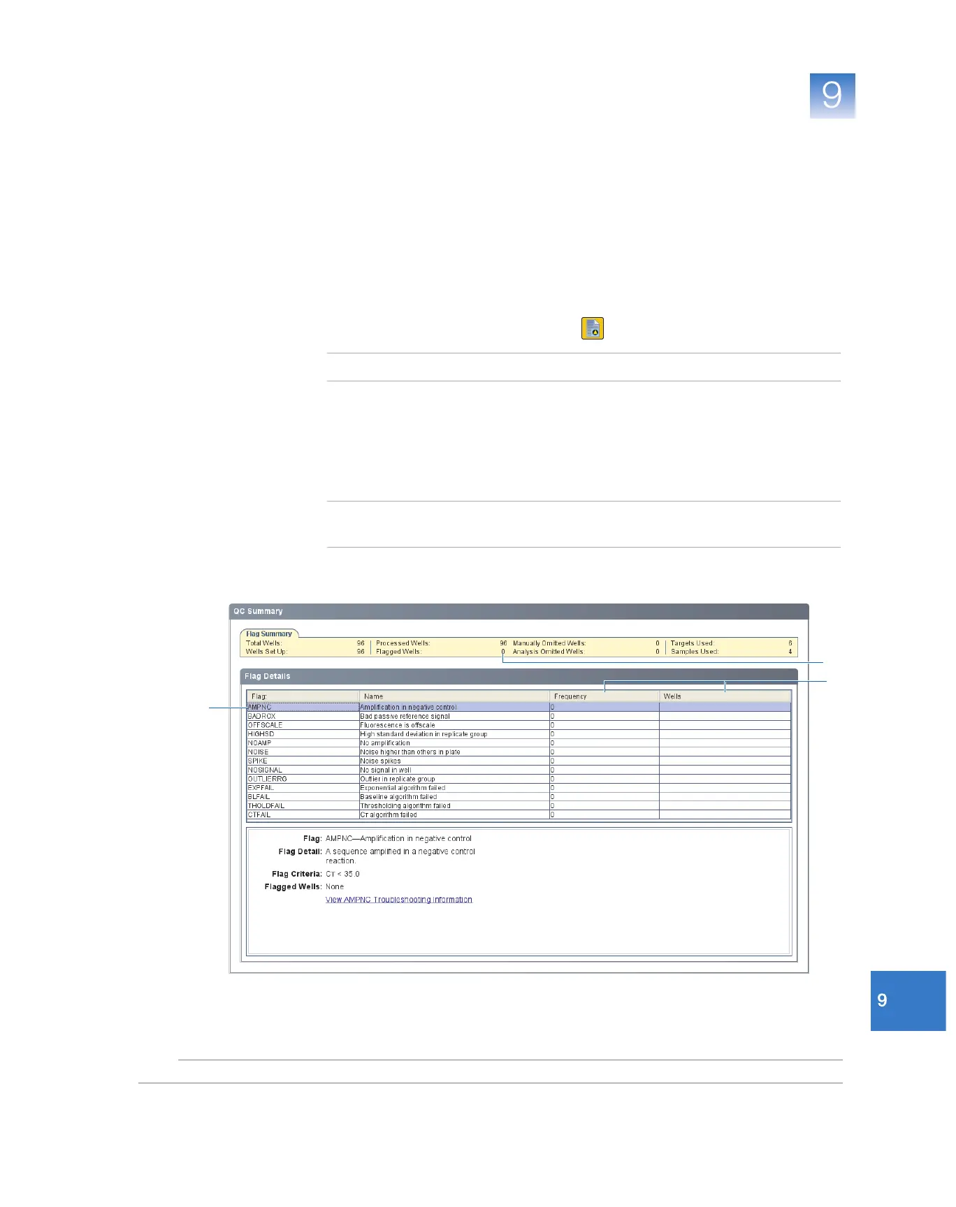 2. Review the Flags Summary. In the example experiment, there are no flagged wells.