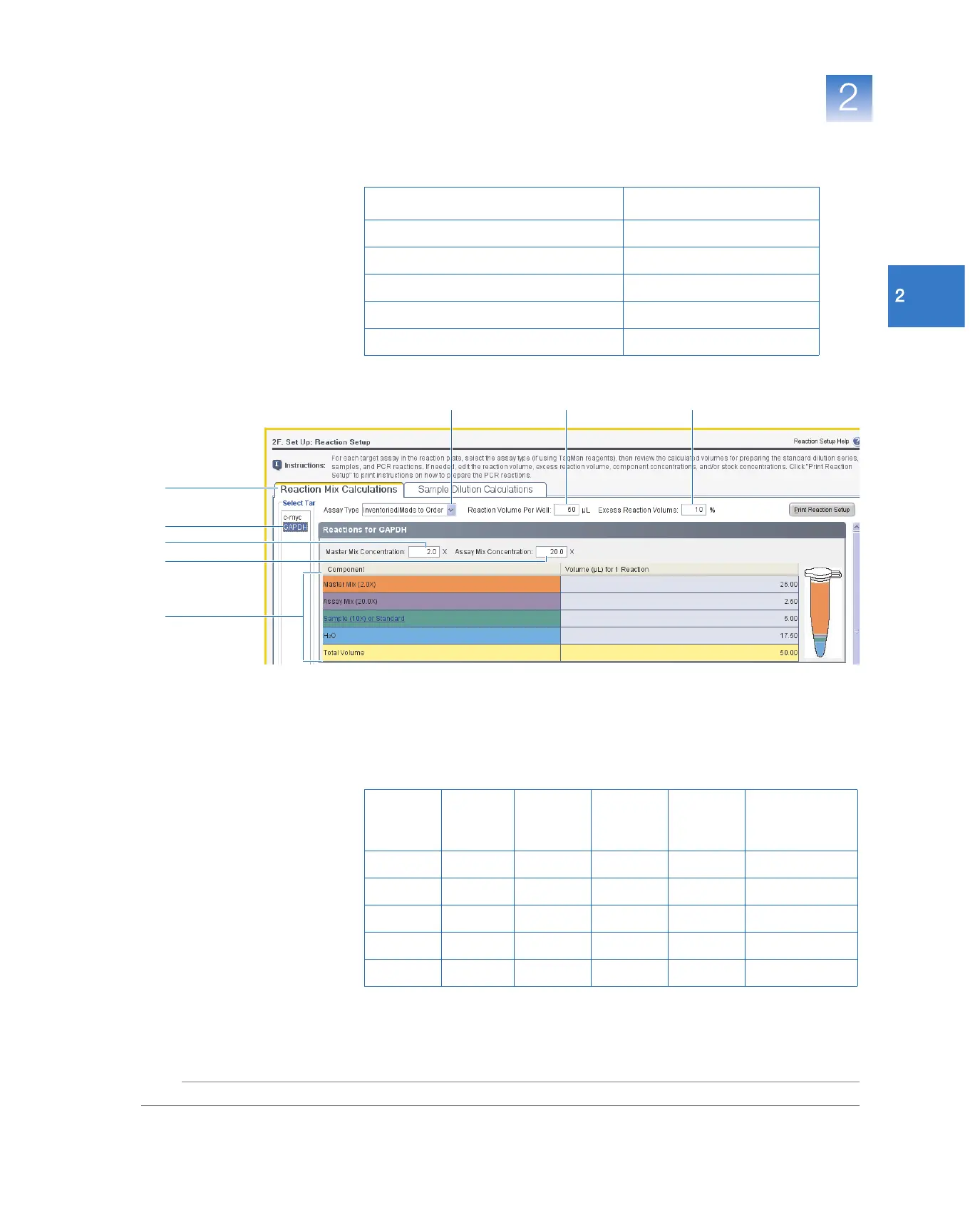 c. Review the components and calculated volumes for the PCR reactions: