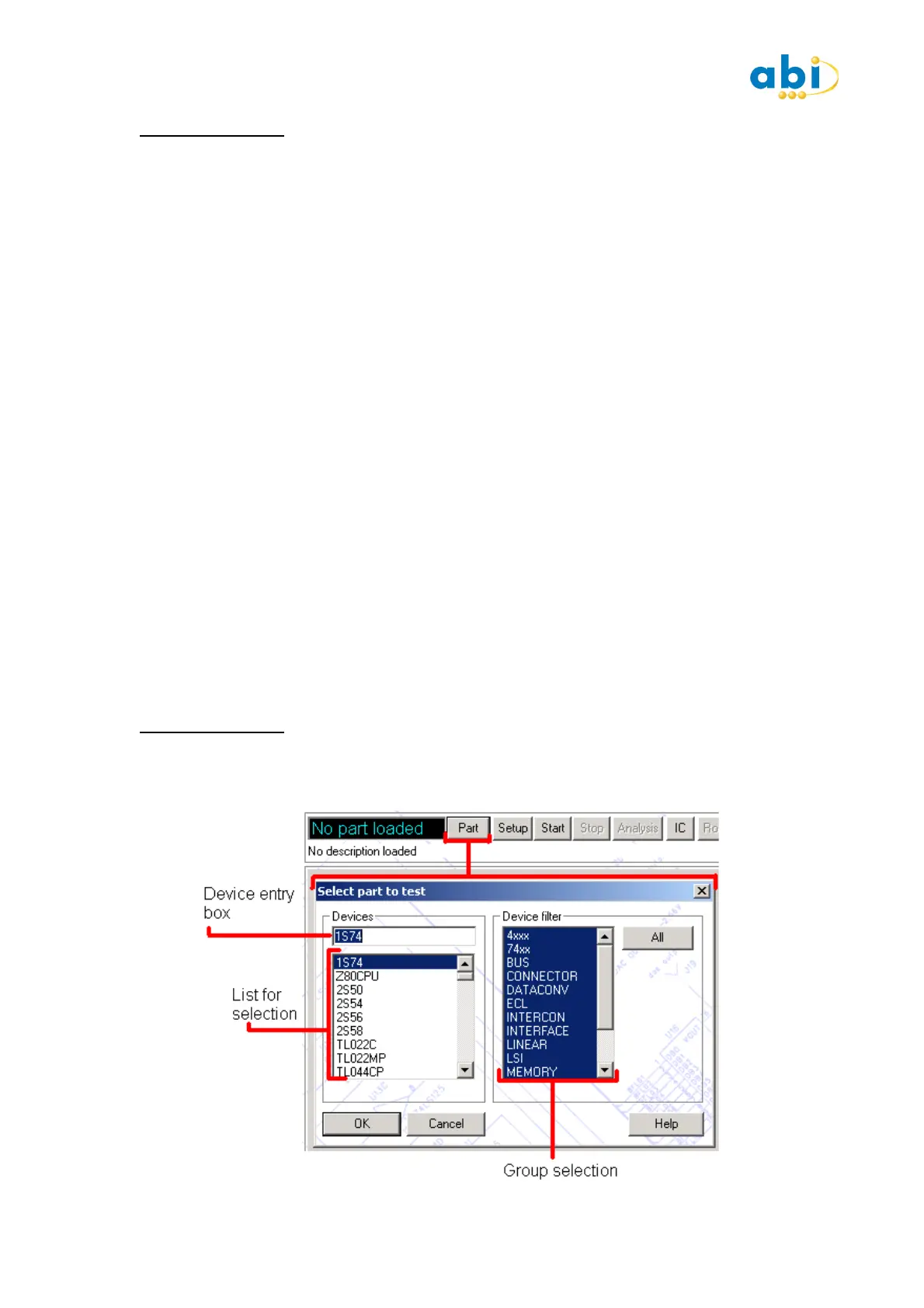 On first opening the IC Tester there is normally no part loaded from the device library.