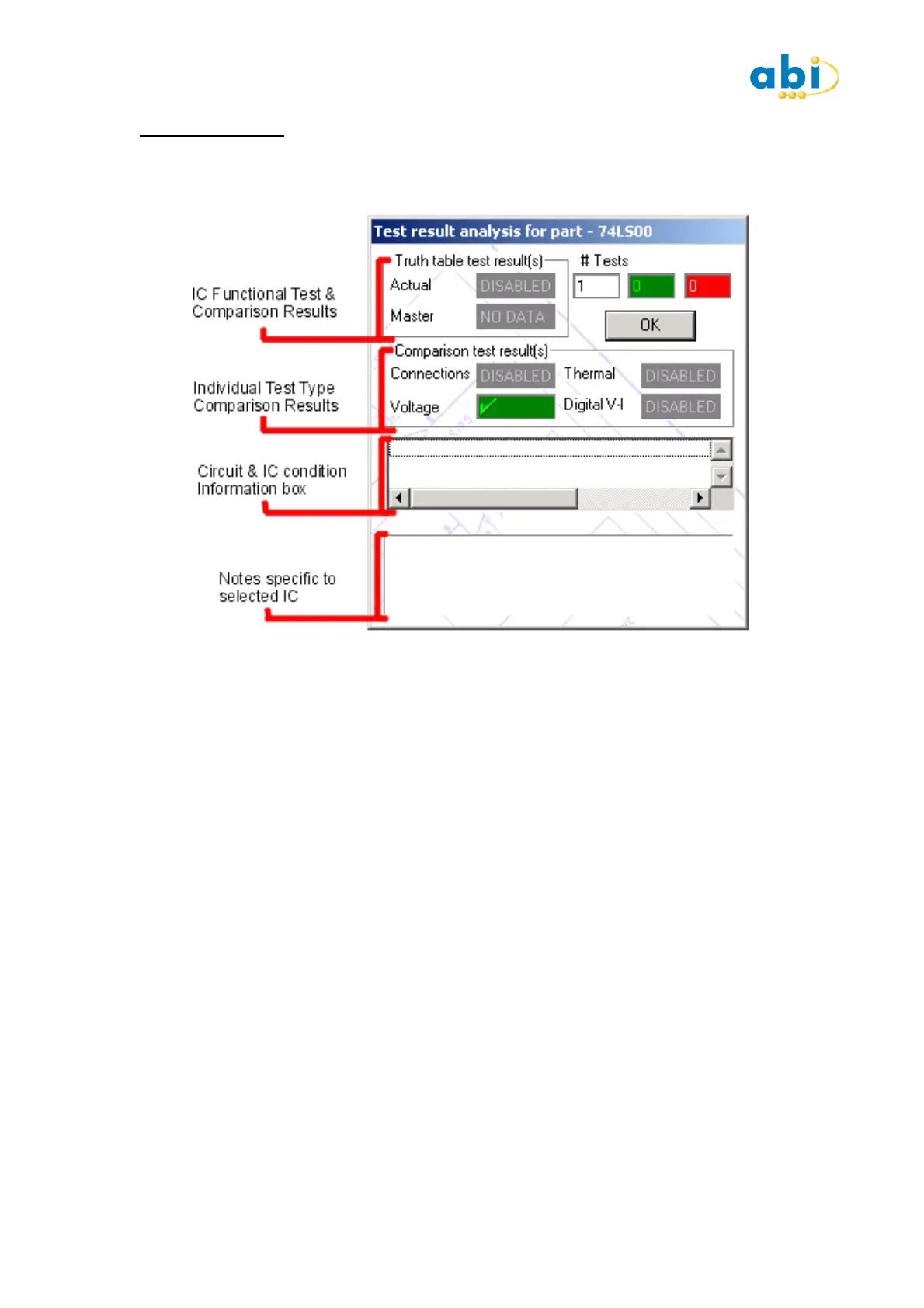 Press START on the IC Tester and observe the Test Results Analysis window.