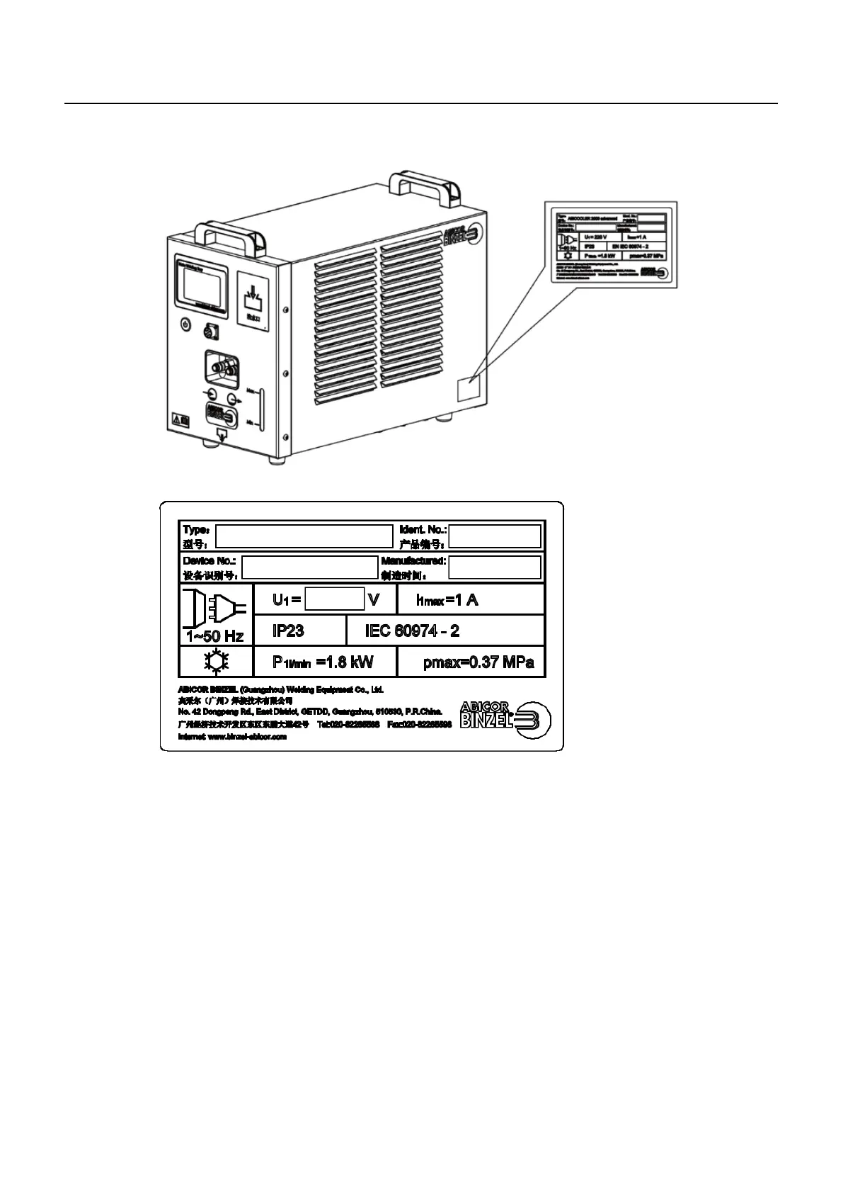 The cooling unit is identified by a nameplate on one side of the housing as follows: