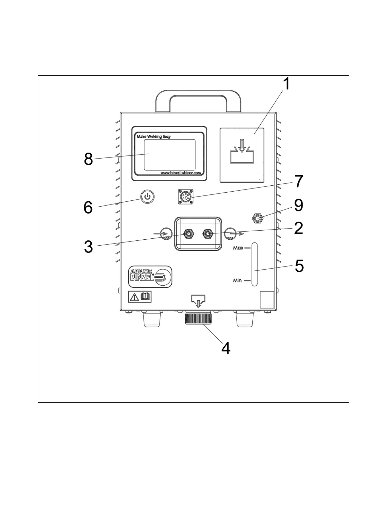 5 Communication signal connector 8 Display 9 ∅6 Compressed air connector