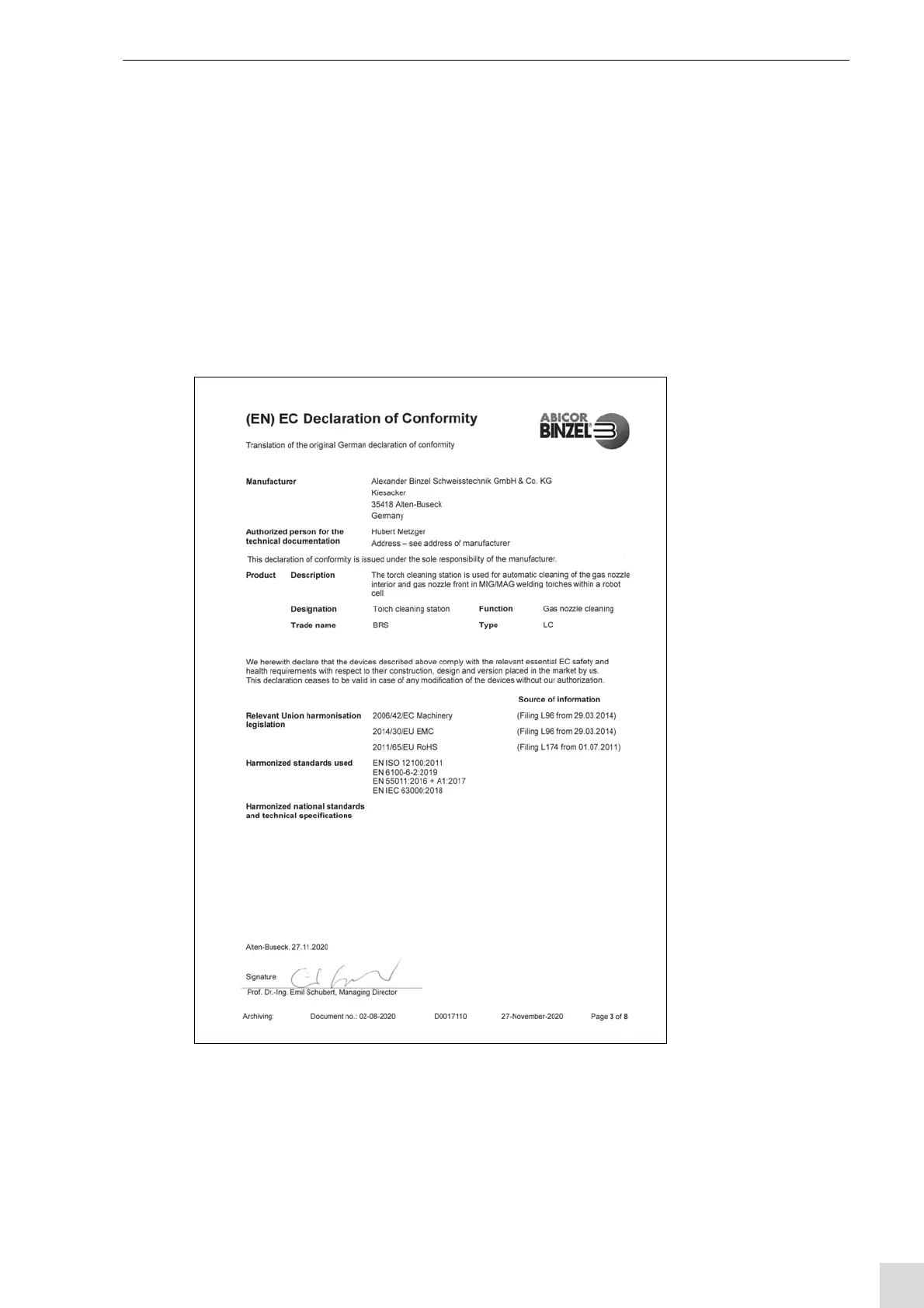 These operating instructions describe the BRS-LC torch cleaning station only. The BRS-LC torch cleaning station must only be