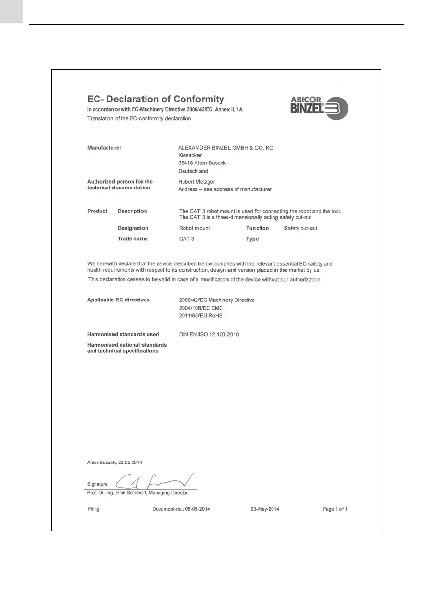 Abicor Binzel CAT 3 - Declaración de Conformidad de la UE