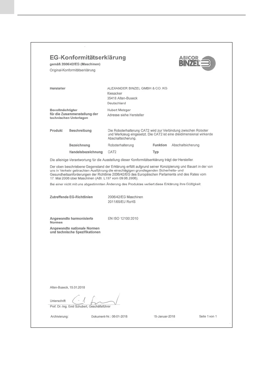 Abicor Binzel CAT2 - Identifikation; EU-Konformitätserklärung