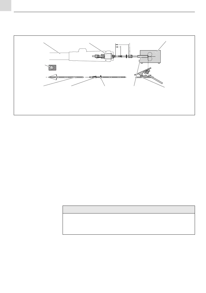 4 Überlange Kunststoffseele (9) vor den Drahtförderrollen markieren.