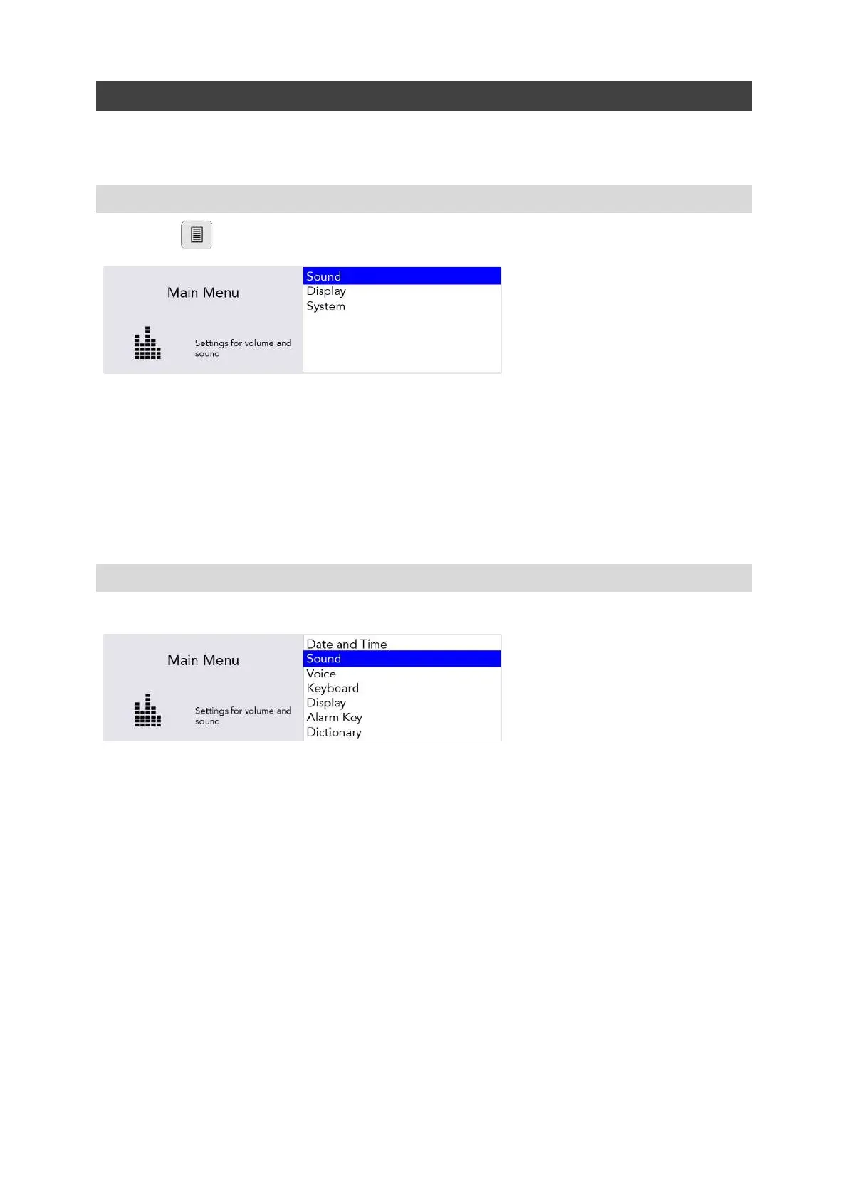 After a short time, if no keys are pressed, the menu will ‘time out’ and return you to the previous