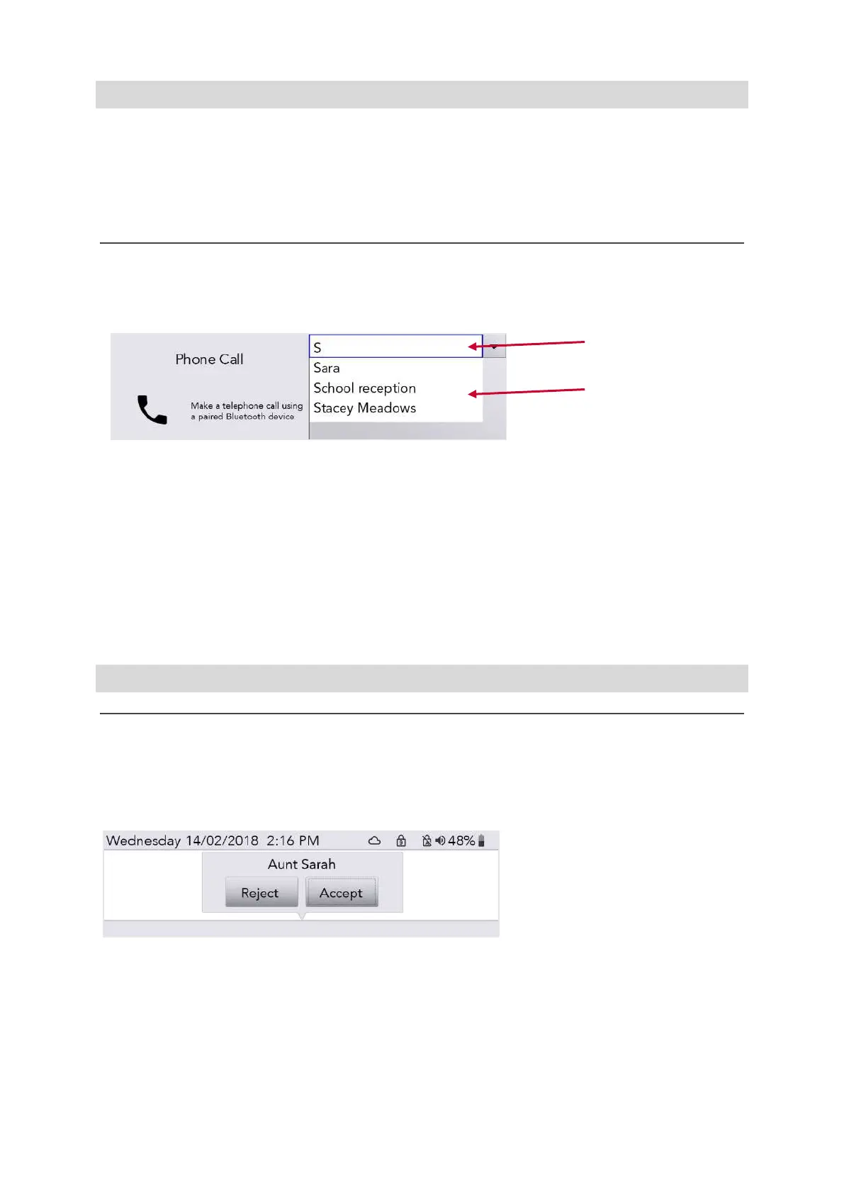 Once you are paired with your phone you will be able to browse through your contacts.