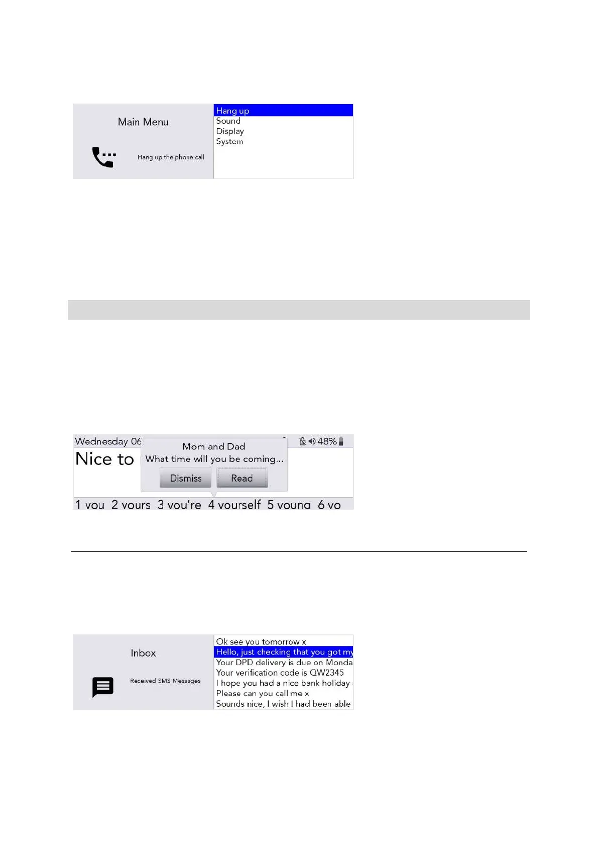 From here you can Read or Dismiss the text pressing the Left or Right Arrow key, then Enter.