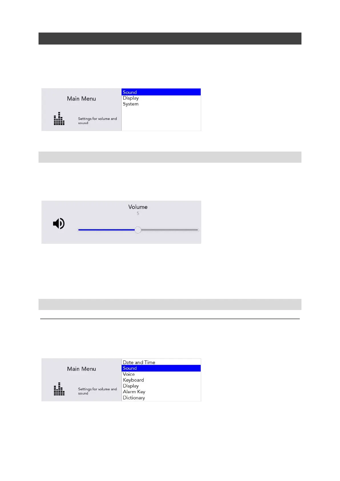 Use the Arrow keys to adjust values such as Volume up and down, then press Enter to save your