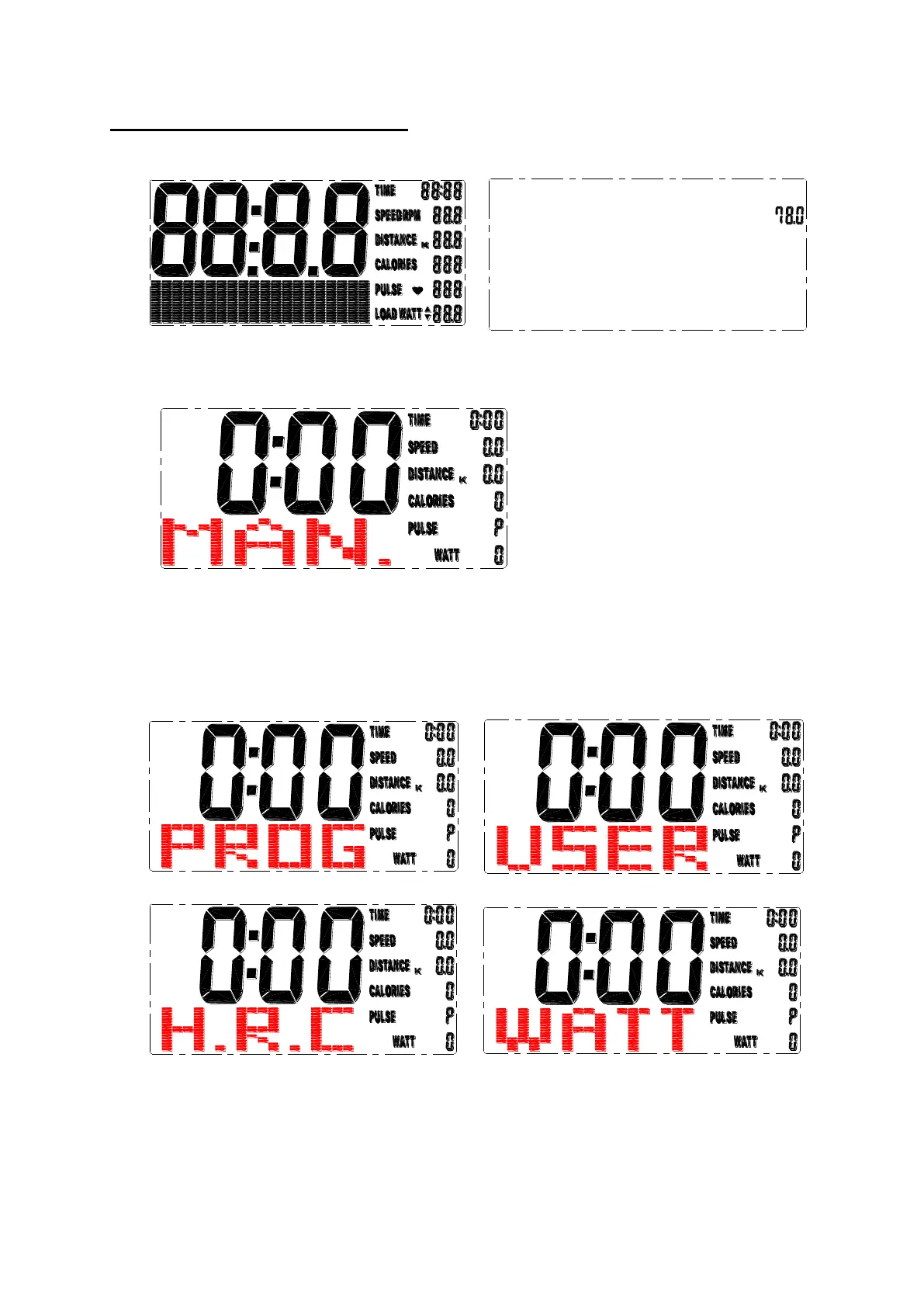 (användarprogram) / H.R.C. (puls) / WATT (bild 4~7). Tryck på MODE som