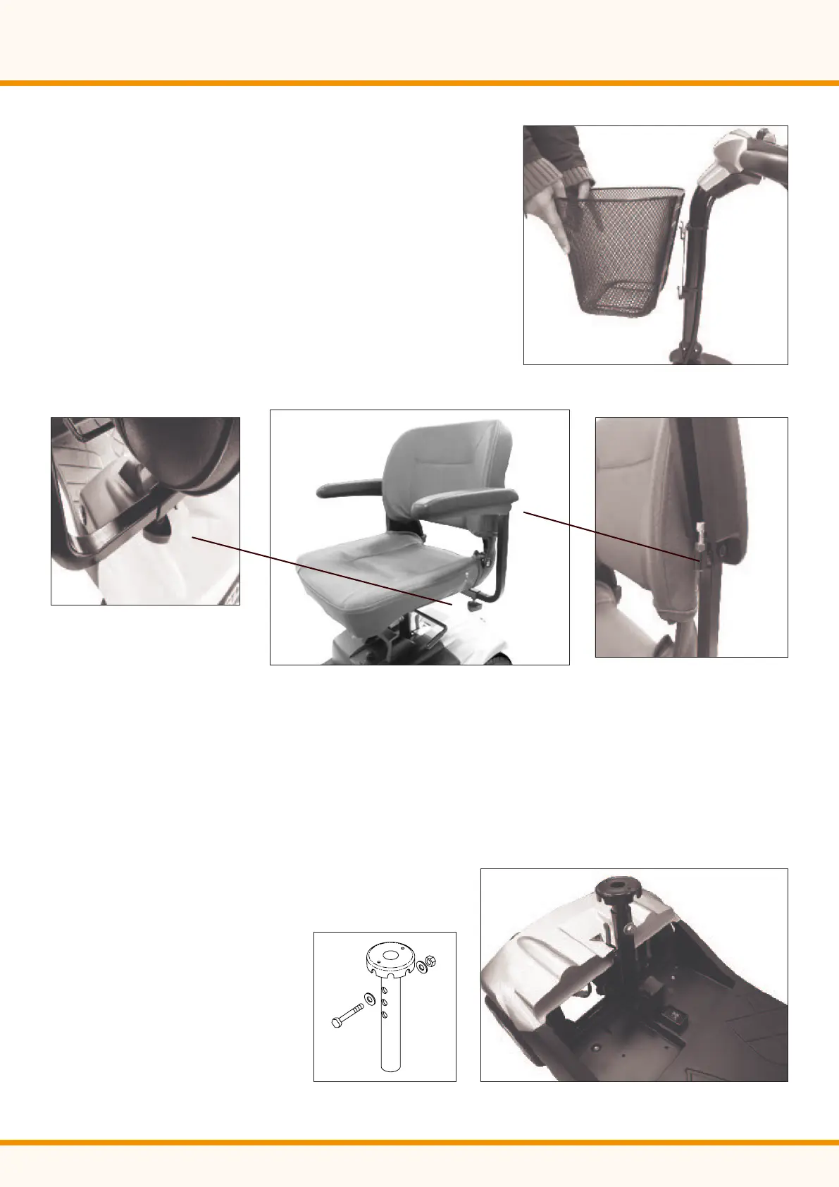 • Remove the seat, then screw, nut and washer from seat post.