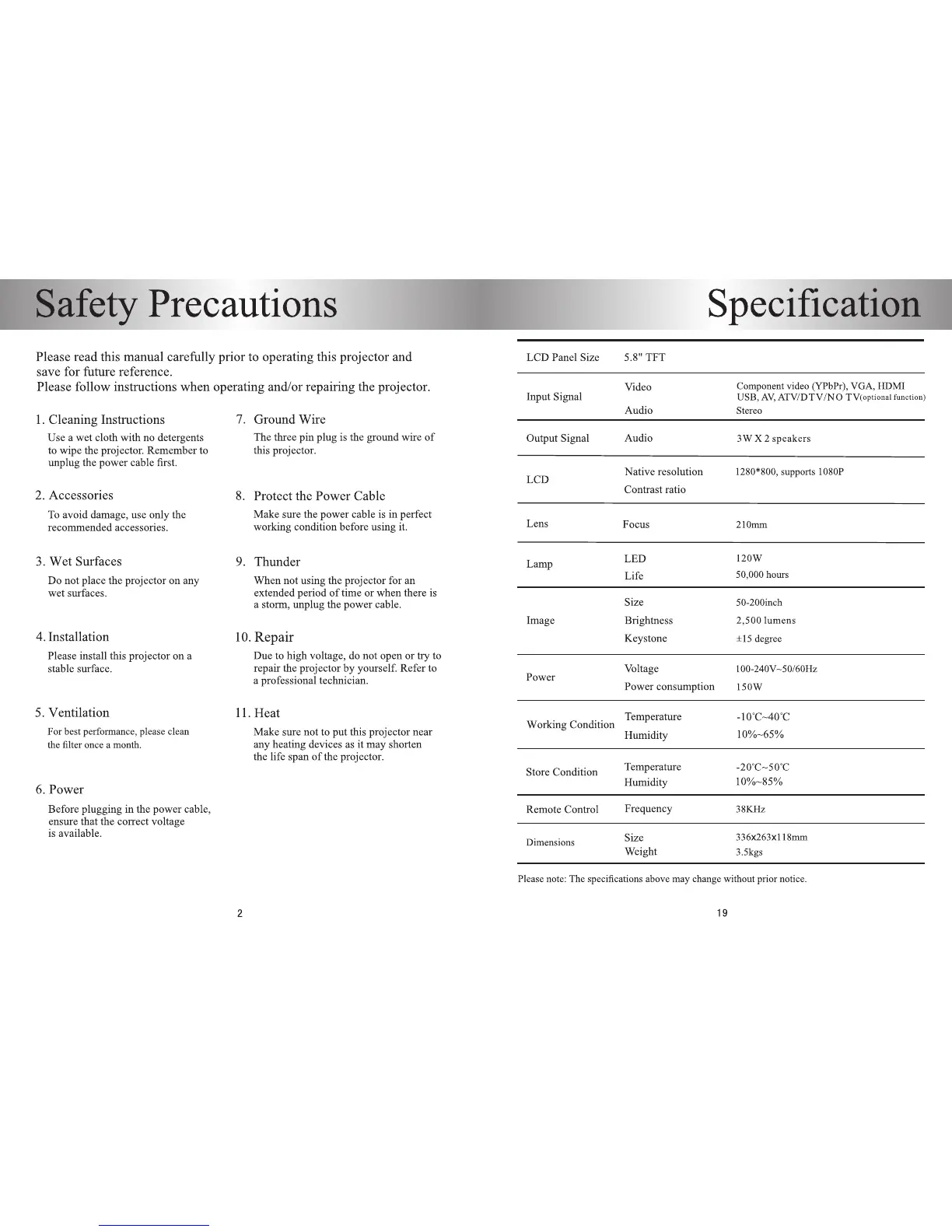 AbiS HD6000 Plus - Safety Precautions; Specification