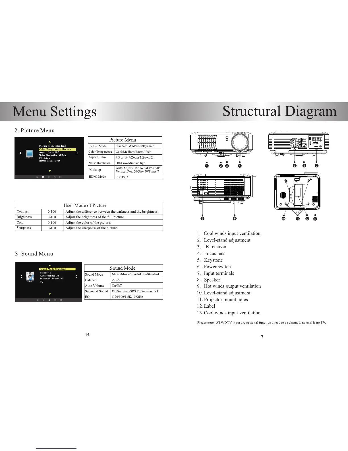 AbiS HD6000 Plus - Structural Diagram; Picture Menu; Sound Menu