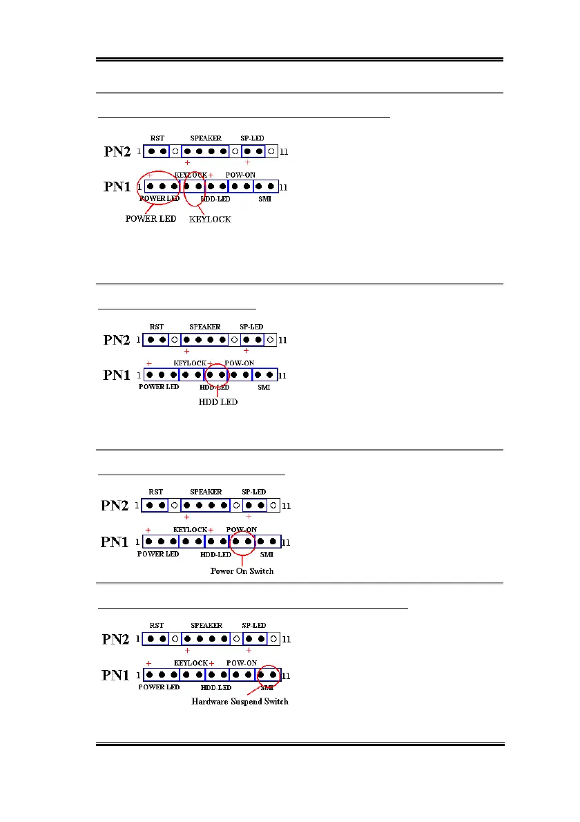 PN1 (Pin 1-2-3-4-5): Power LED and Keylock Switch Headers