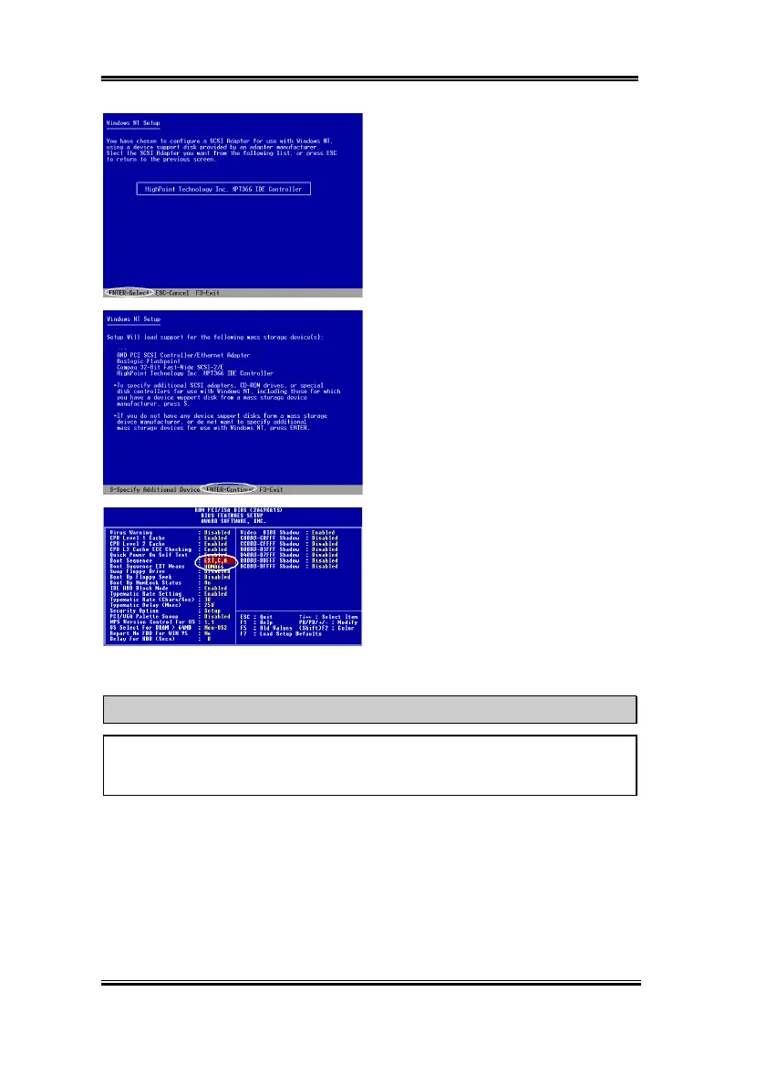 Don’t remove your Windows NT installation CD after the first reboot because Windows