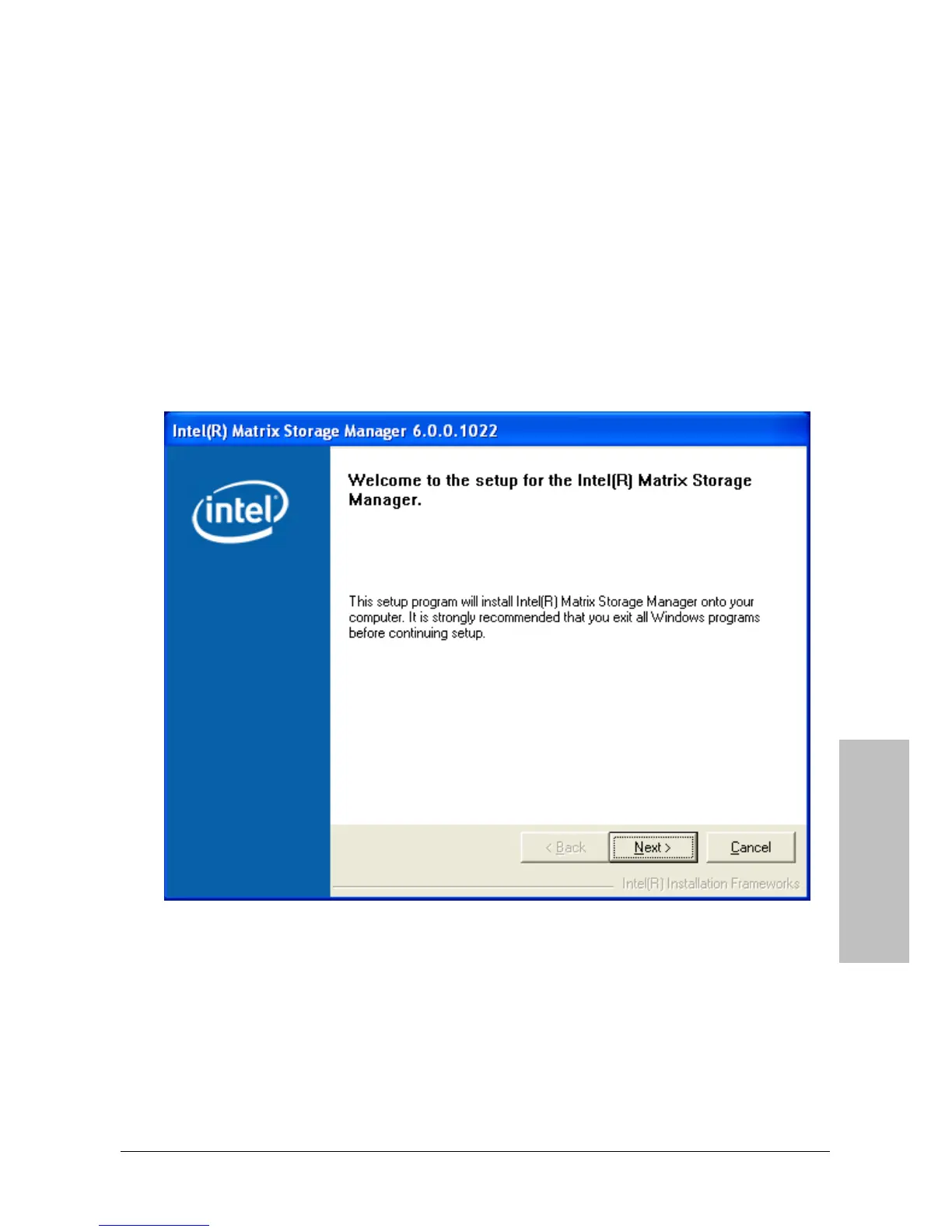 2. Click the [Intel Matrix Storage Technology Driver] item. The installation screen appears: