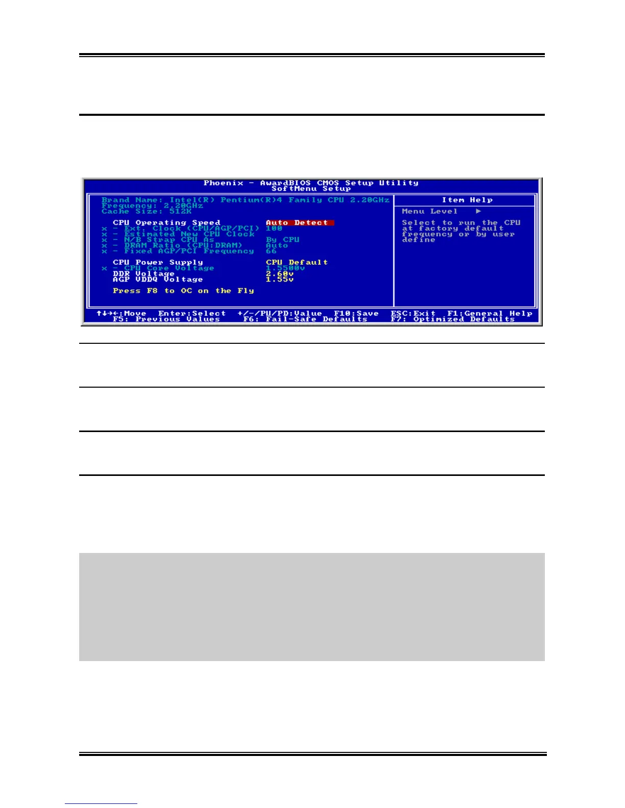 All the parameters regarding CPU FSB speed, multiplier factor, the AGP & PCI clock, and even the CPU