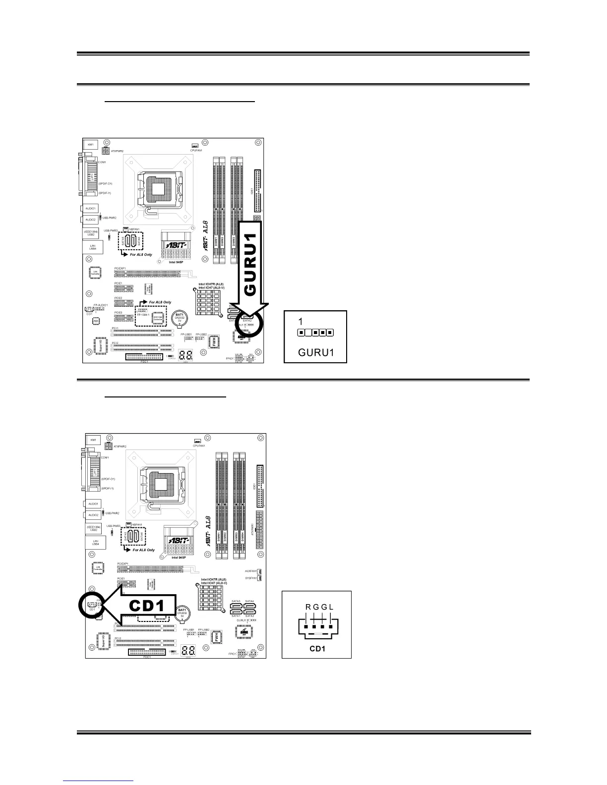 Abit AL8 - GURU Clock Connection Header; Internal Audio Connectors
