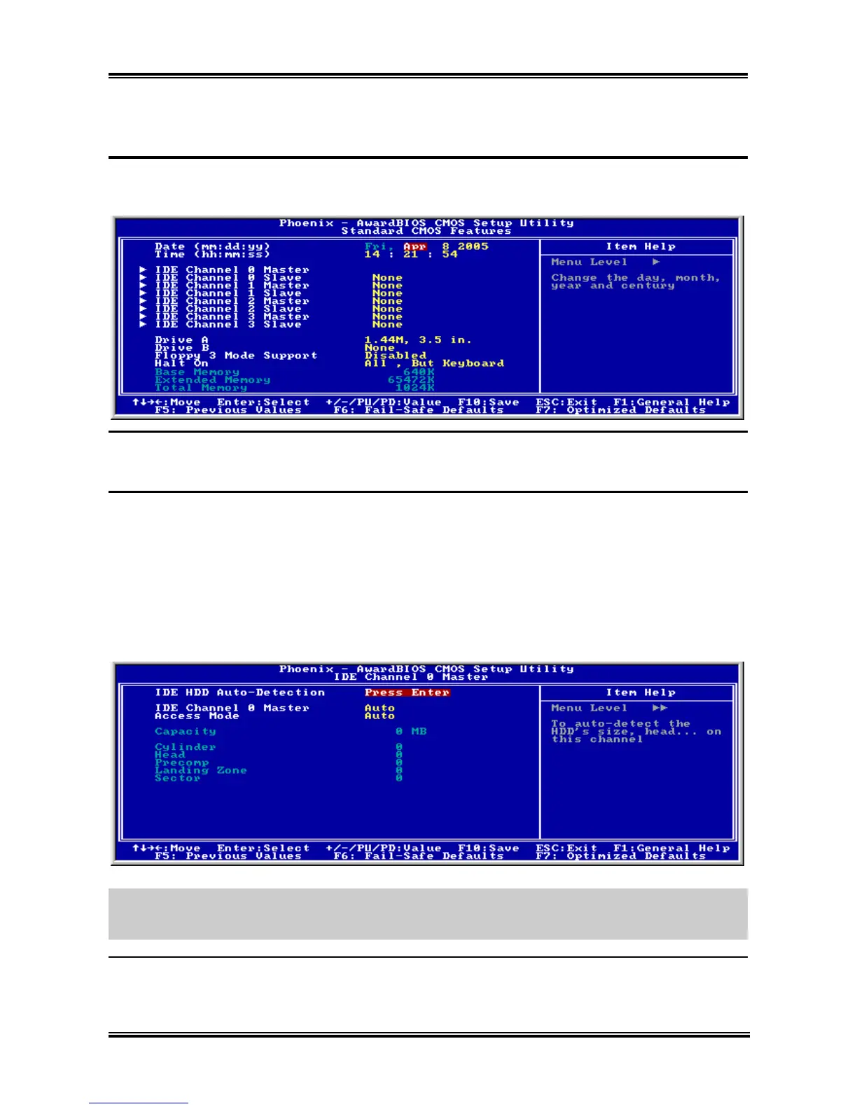 NOTE: The items “IDE Channel 2 Master/Slave” and “IDE Channel 3 Master/Slave” appear only when