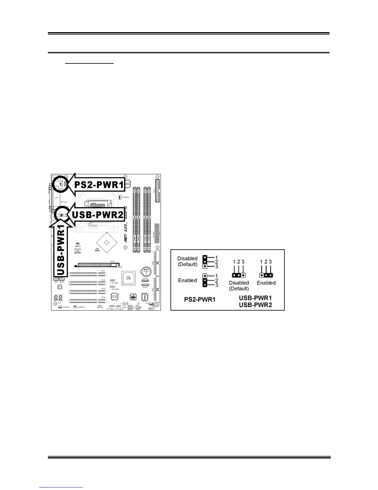 Pin 1-2 shorted (default): Disable wake-up function support at Keyboard/Mouse port.