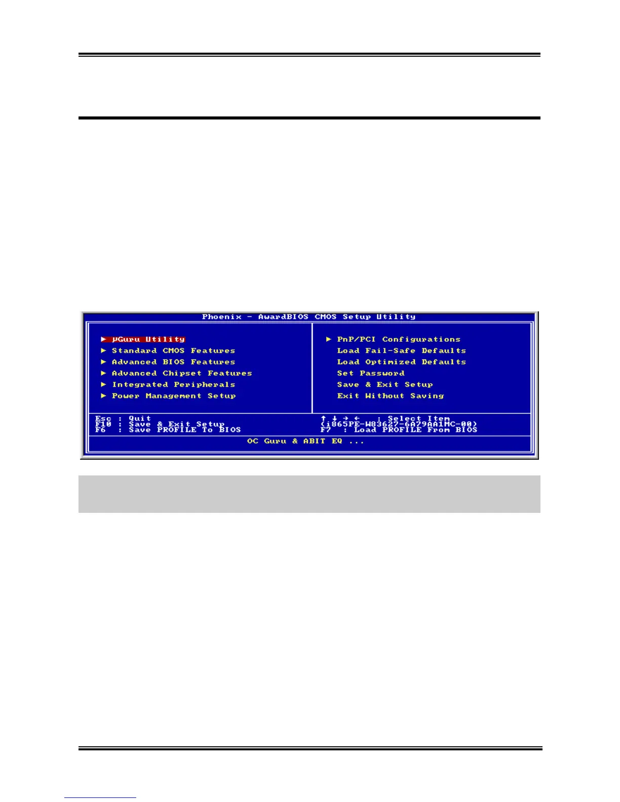 After pressing <Del> key, the main menu screen appears.