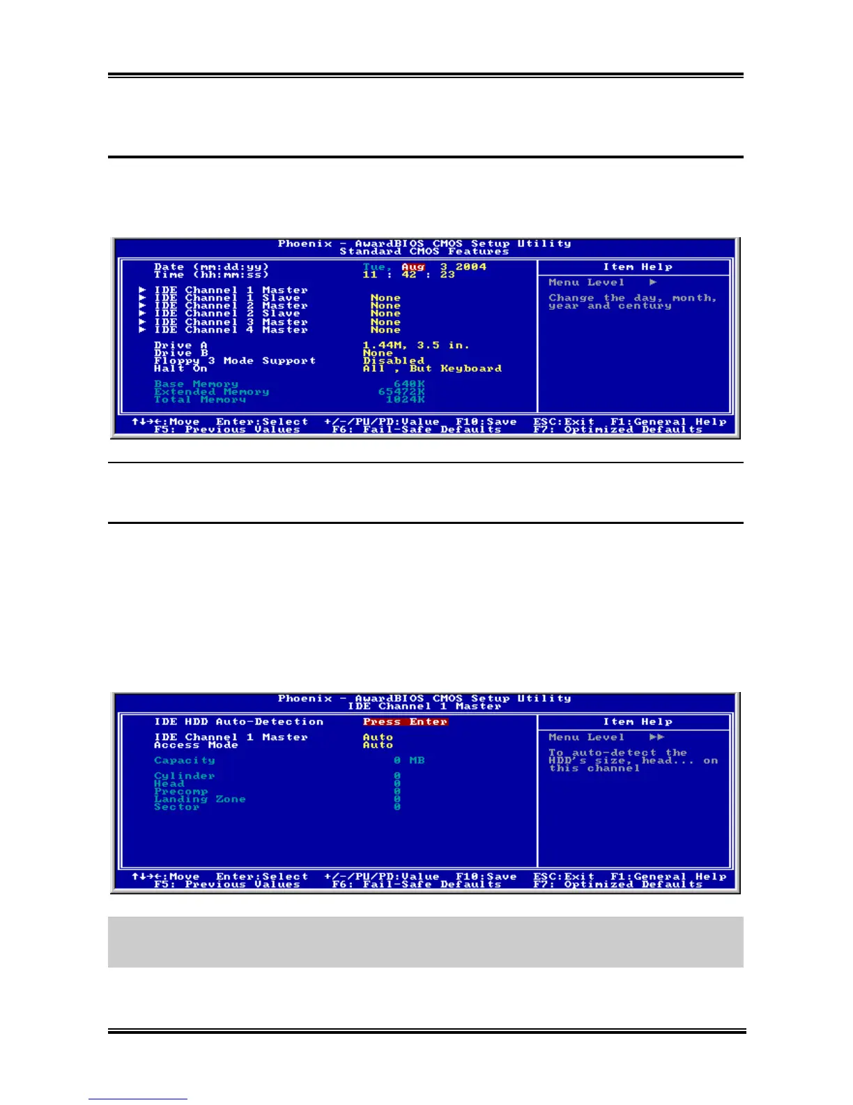IDE Channel 1 Master/Slave, IDE Channel 2 Master/Slave, IDE Channel 3