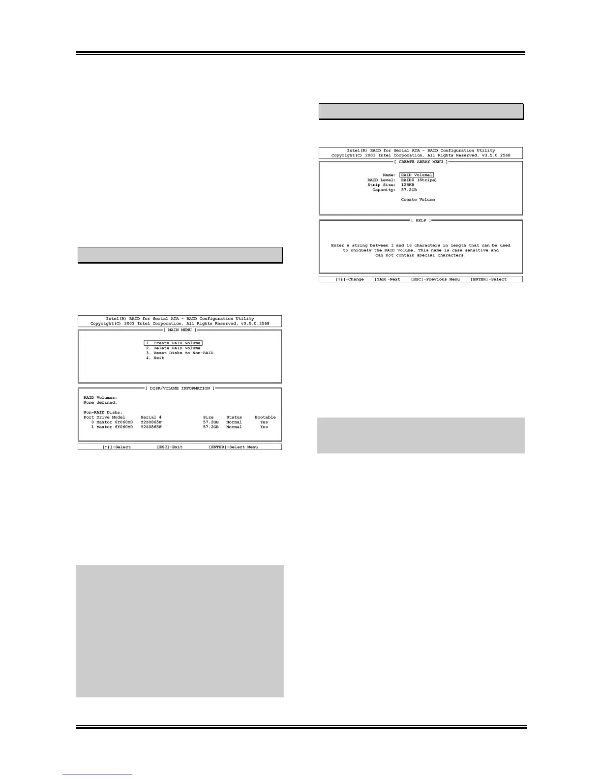 menu of RAID Configuration Utility:
