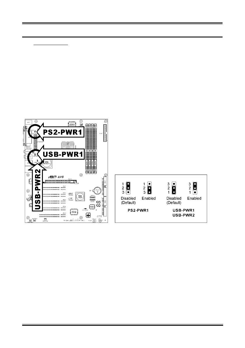 Pin 1-2 shorted (default): Disable wake-up function support at Keyboard/Mouse port.
